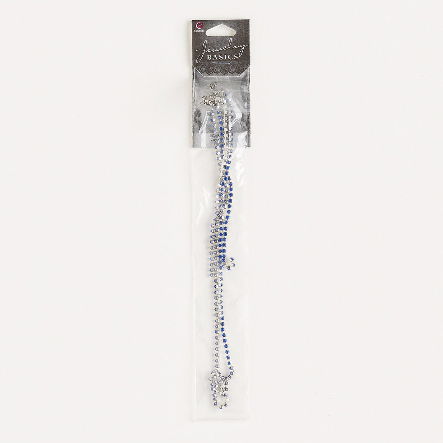 Cupchain, glass and imitation nickel-finished brass, sapphire blue, 2.3mm with (8) 3.5mm connectors. Sold per pkg of 22 inches.