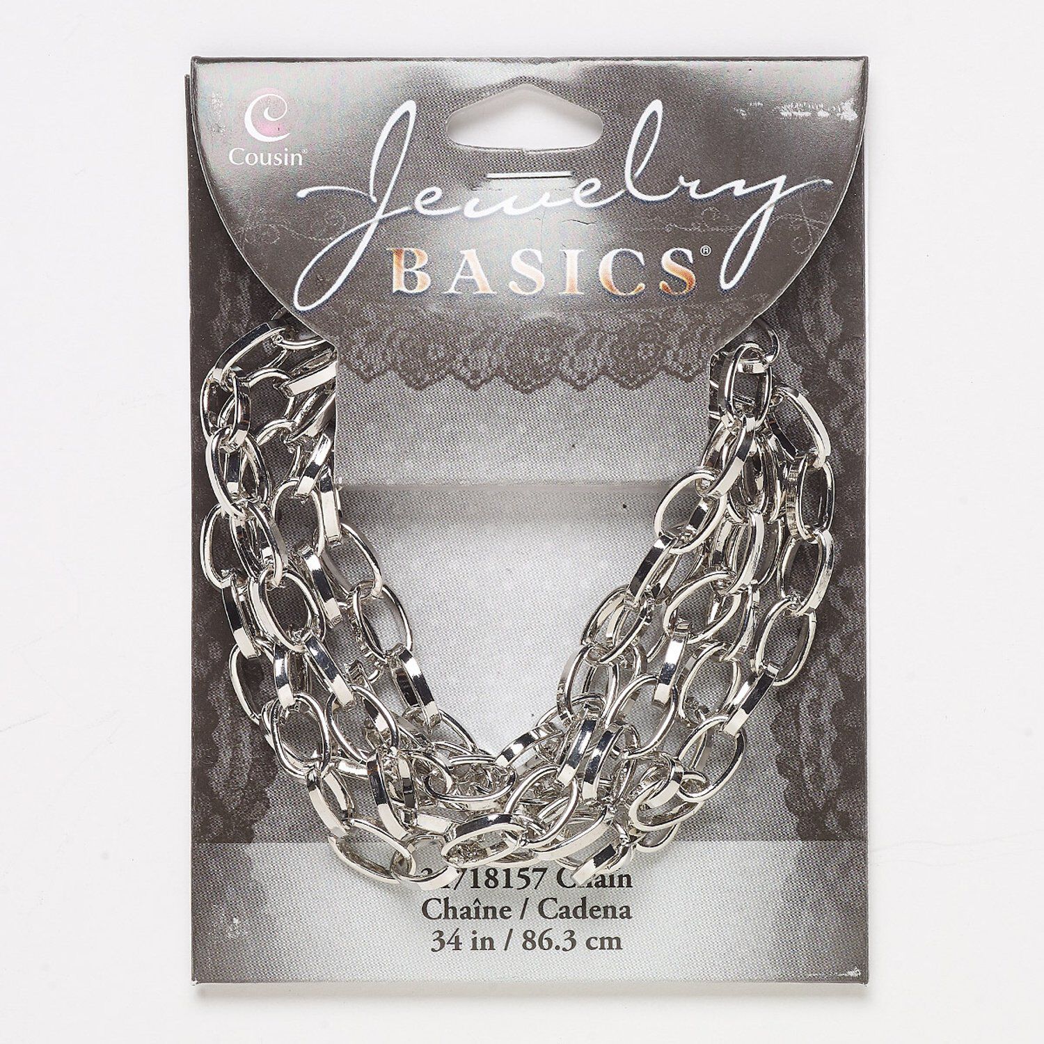 Chain, silver-finished steel, 6.4mm oval rolo, 34 inches. Sold individually.