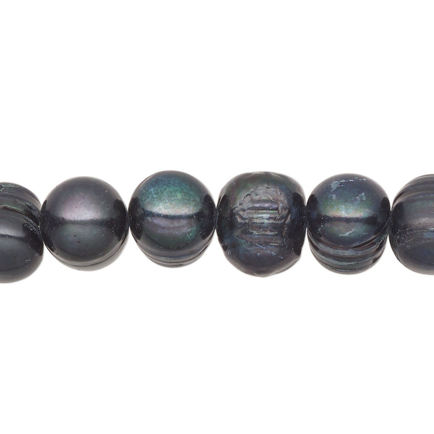 Pearl, cultured freshwater (dyed), iris green, 8-10mm semi-round, D grade, Mohs hardness 2-1/2 to 4. Sold per 15-inch strand.