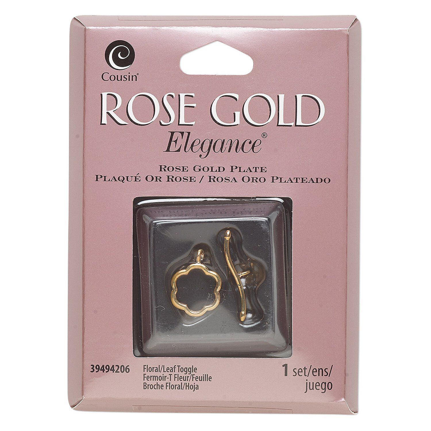 Clasp, toggle, rose gold-plated copper and lacquer, 12.5mm flower. Sold individually.