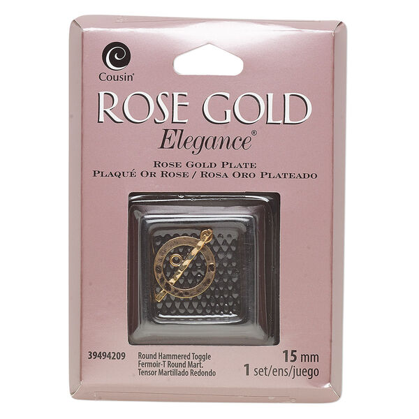 Clasp, toggle, rose gold-plated copper and lacquer, 15.5mm hammered flat round. Sold individually.