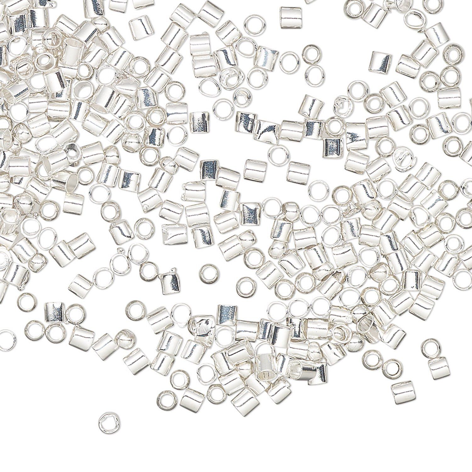 Crimp, silver-finished brass, 2x1.5mm round and 2mm tube, 1-1.3mm inside diameter. Sold per pkg of 500.