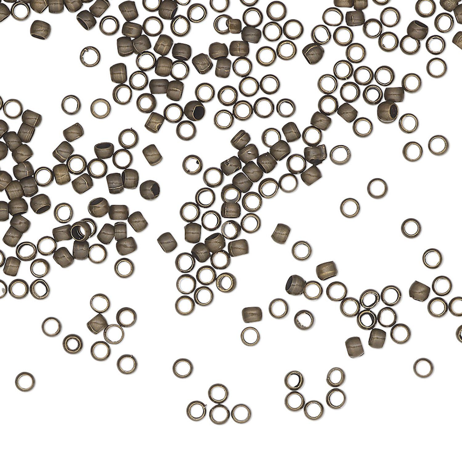 Crimp, antique brass-finished brass, 2x1.5mm round and 2mm tube, 1-1.3mm inside diameter. Sold per pkg of 400.