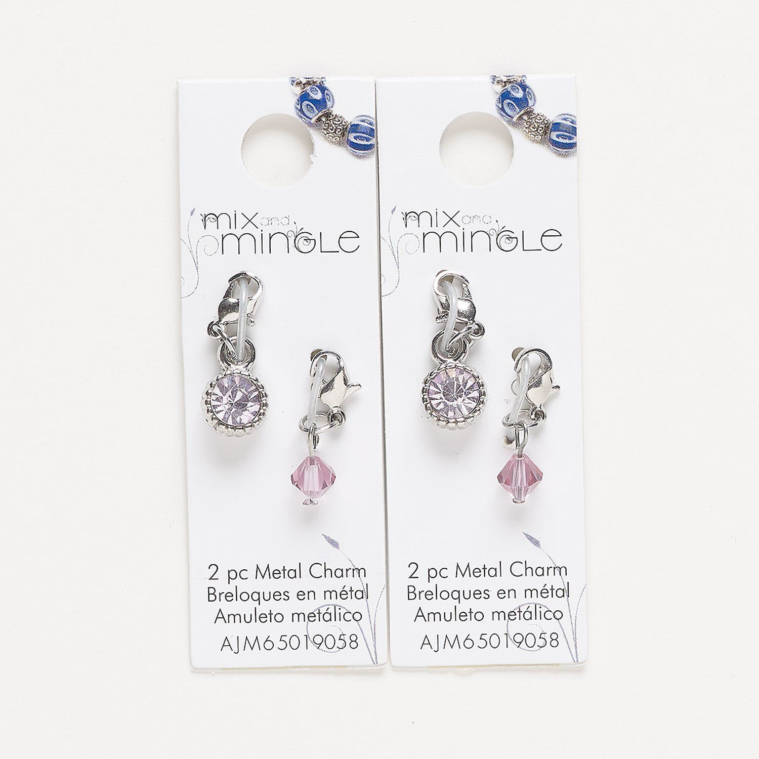 Drop, silver-finished "pewter" (zinc-based alloy) / steel / glass, light pink, 22x7mm single-sided and 24x9mm single-sided with lobster claw clasp. Sold per pkg of (2) 2-piece sets.