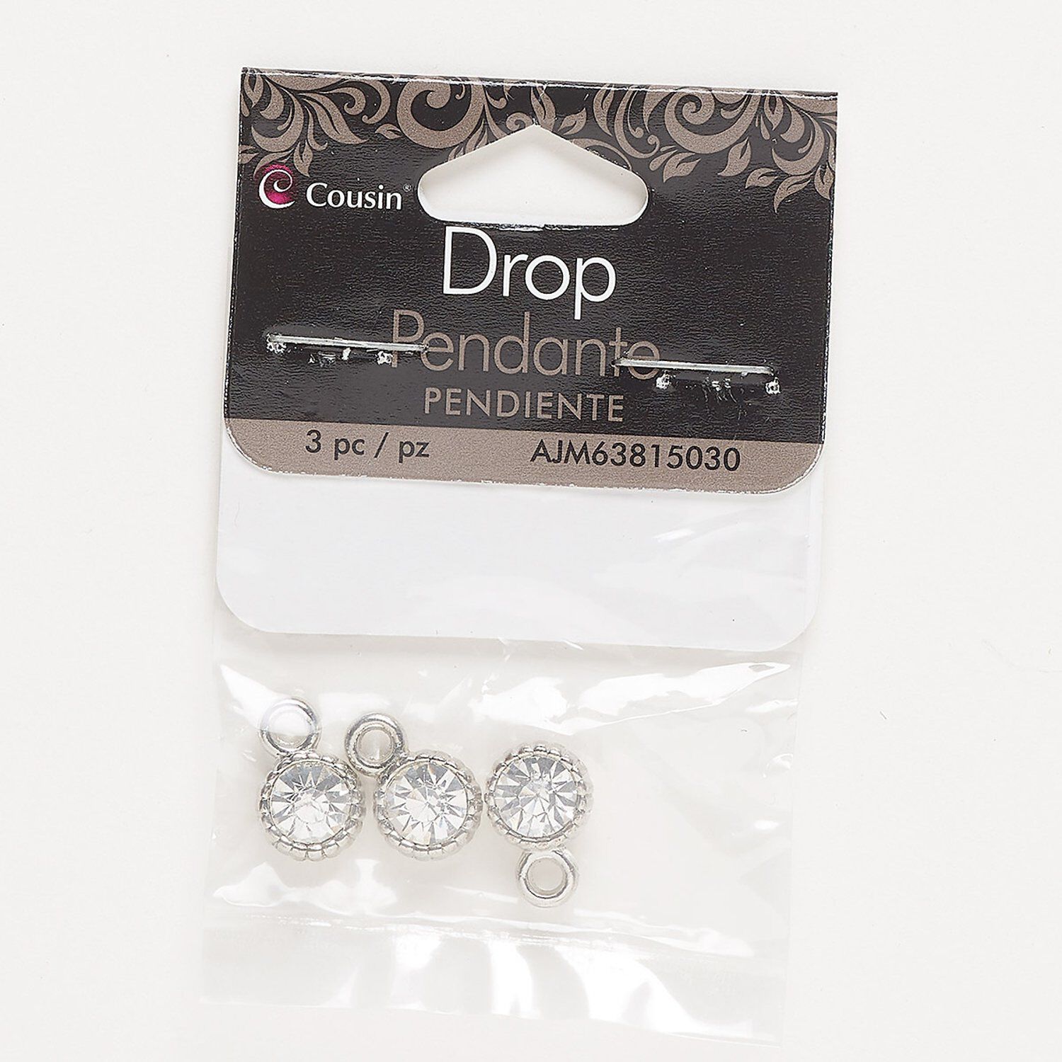 Drop, silver-finished "pewter" (zinc-based alloy) and glass, clear, 8.5mm single-sided corrugated round. Sold per pkg of 3.