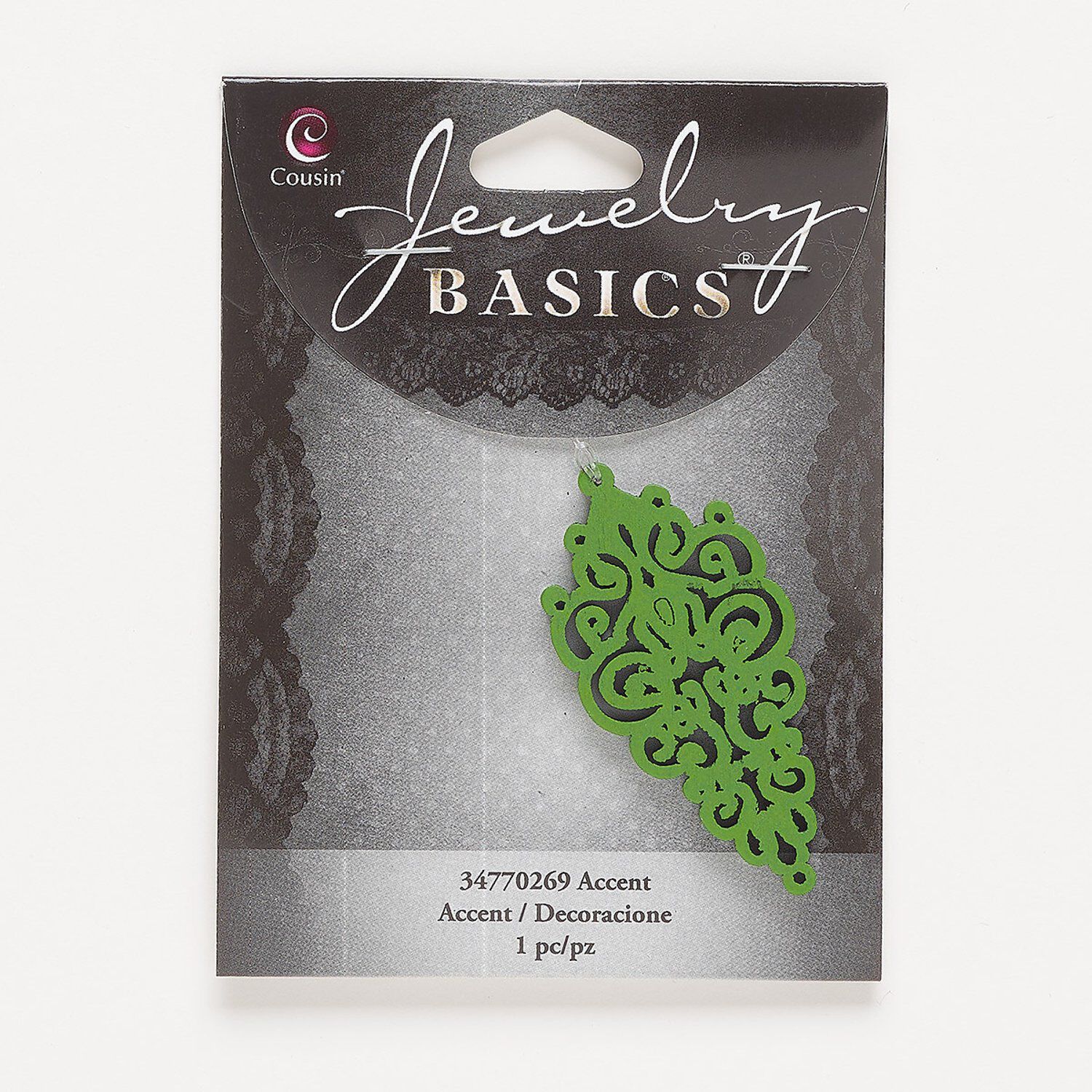 Focal, wood (dyed), green, 50.5x24.5mm double-sided fancy drop with cutout design. Sold individually.