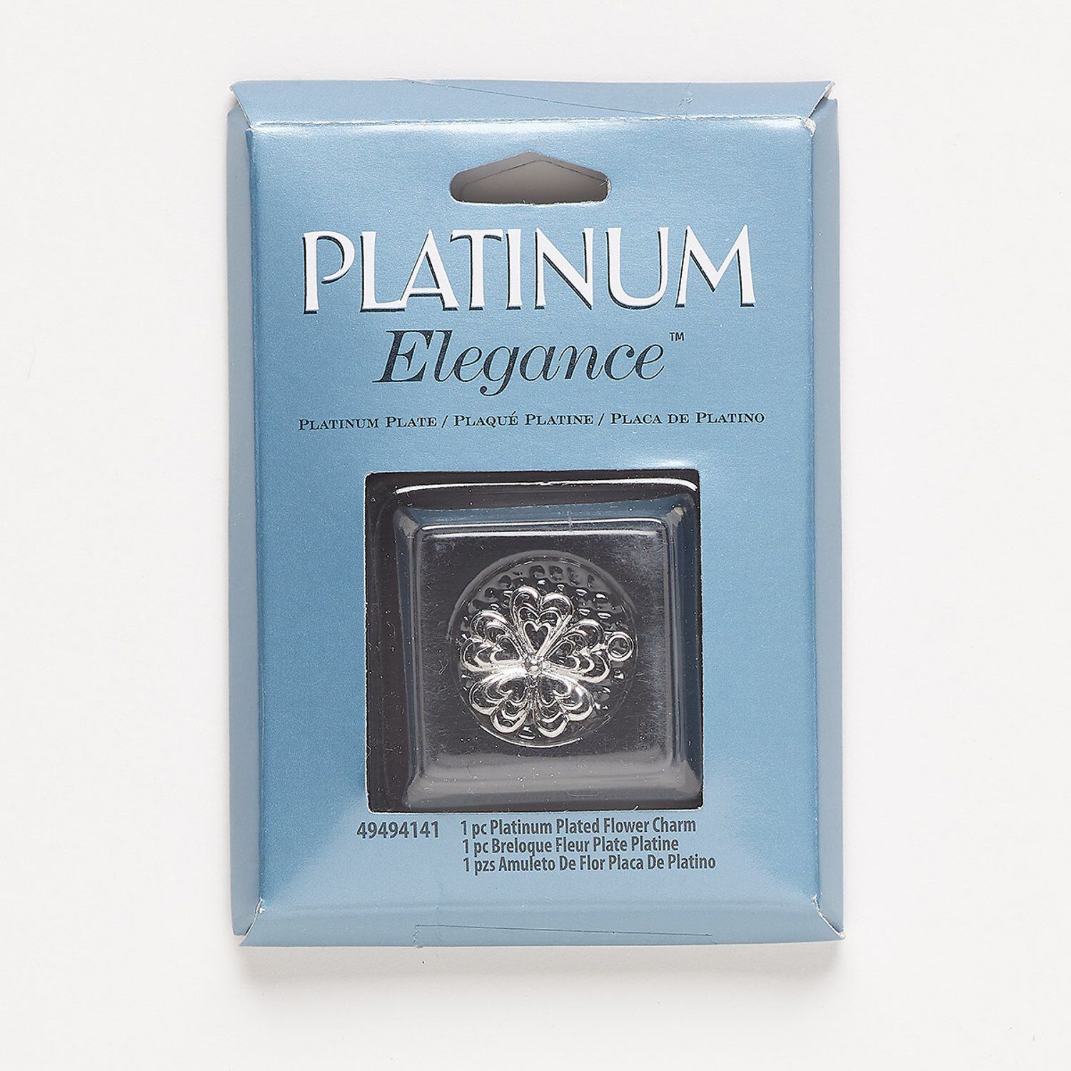 Charm, lacquer and platinum-plated copper, 17mm single-sided flower with cutout hearts. Sold individually.