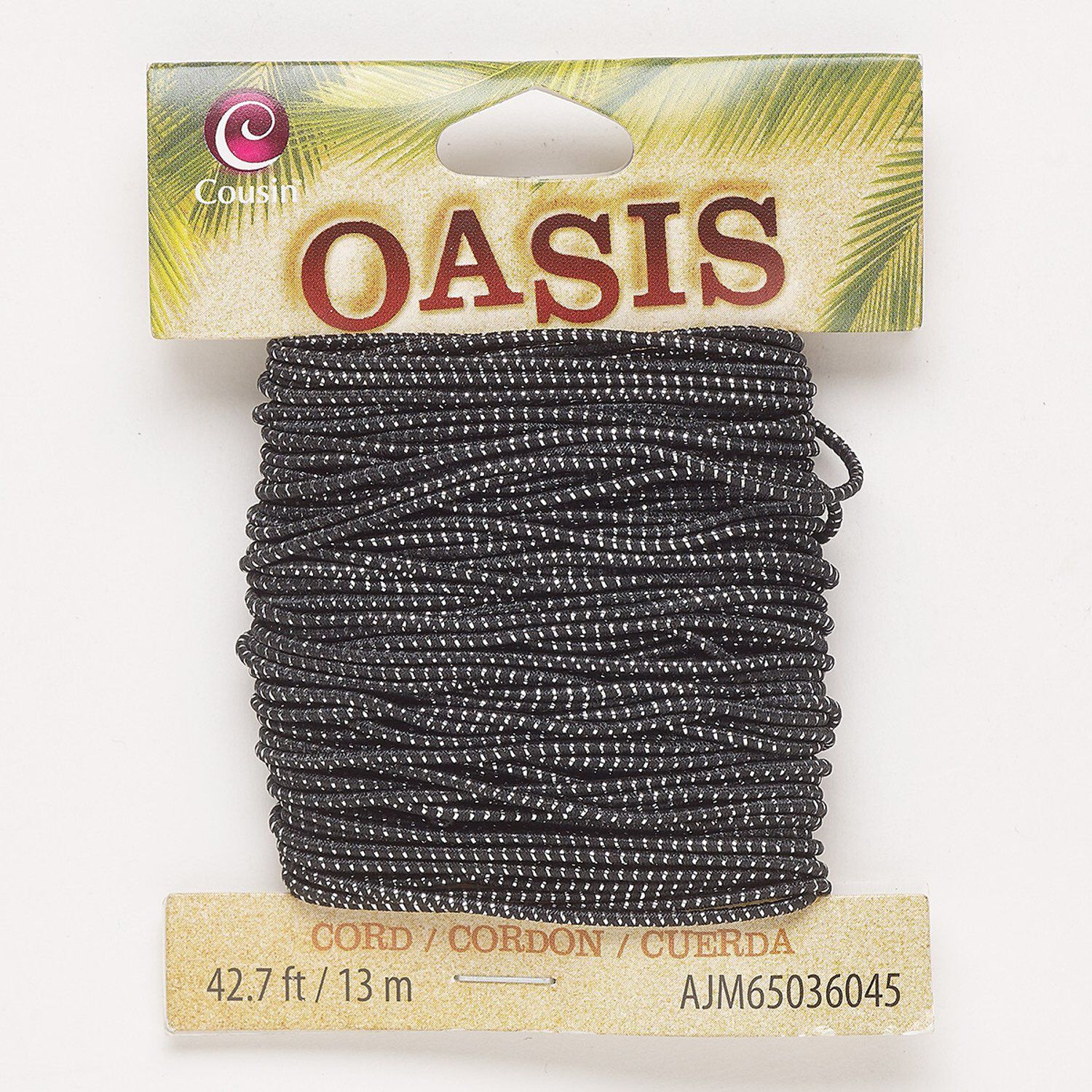 Cord, elastic, black and silver, 1mm round. Sold per 13-meter pkg.