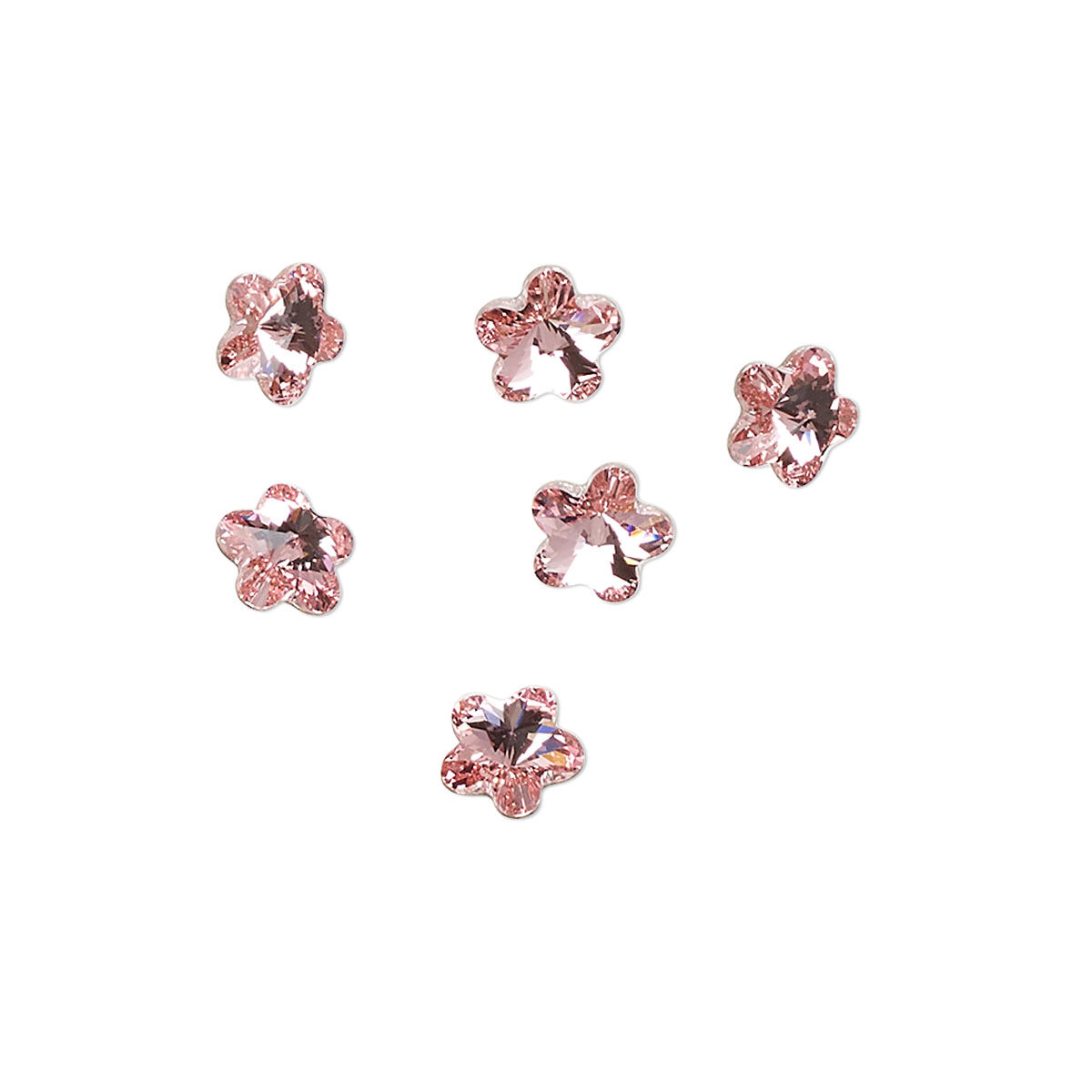 Fancy stone 6pk light rose foil back, Crystal Passions® 6mm flower 4744