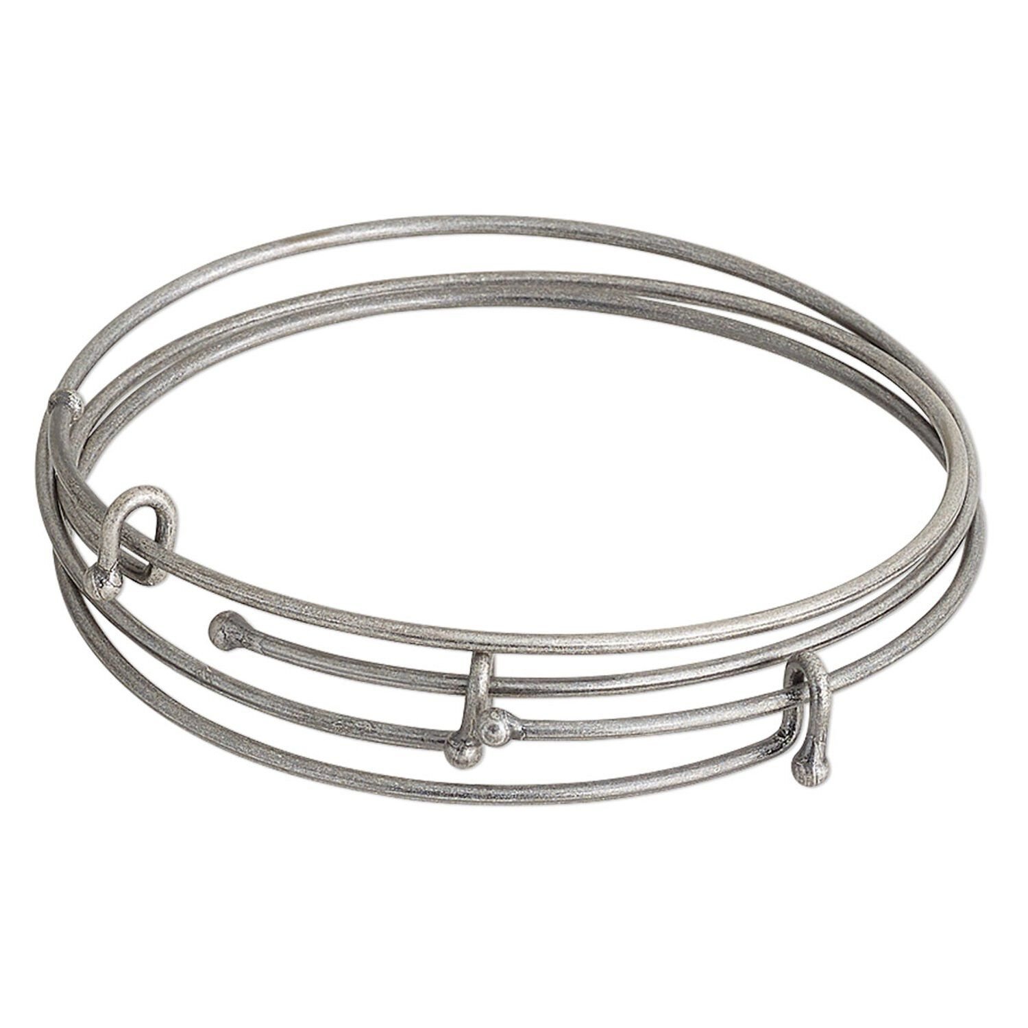 Bracelet, bangle, antique silver finished "pewter" (zinc-based alloy), 2mm wide with 3mm balls, 8 inches. Sold per pkg of 3.