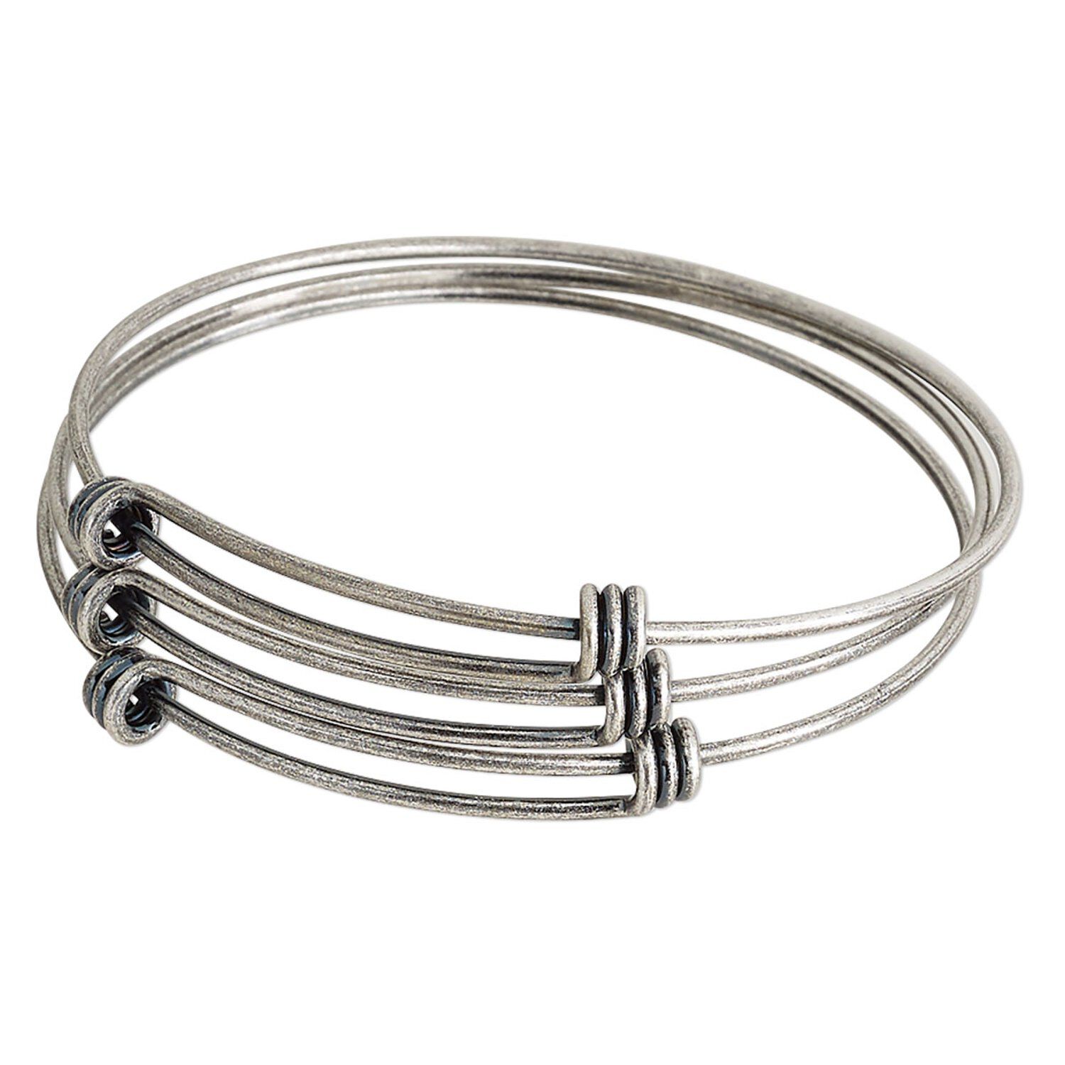 Bracelet, bangle, antique silver-finished "pewter" (zinc-based alloy), 1.5mm wide with 7mm coil, 8-1/2 inches. Sold per pkg of 3.