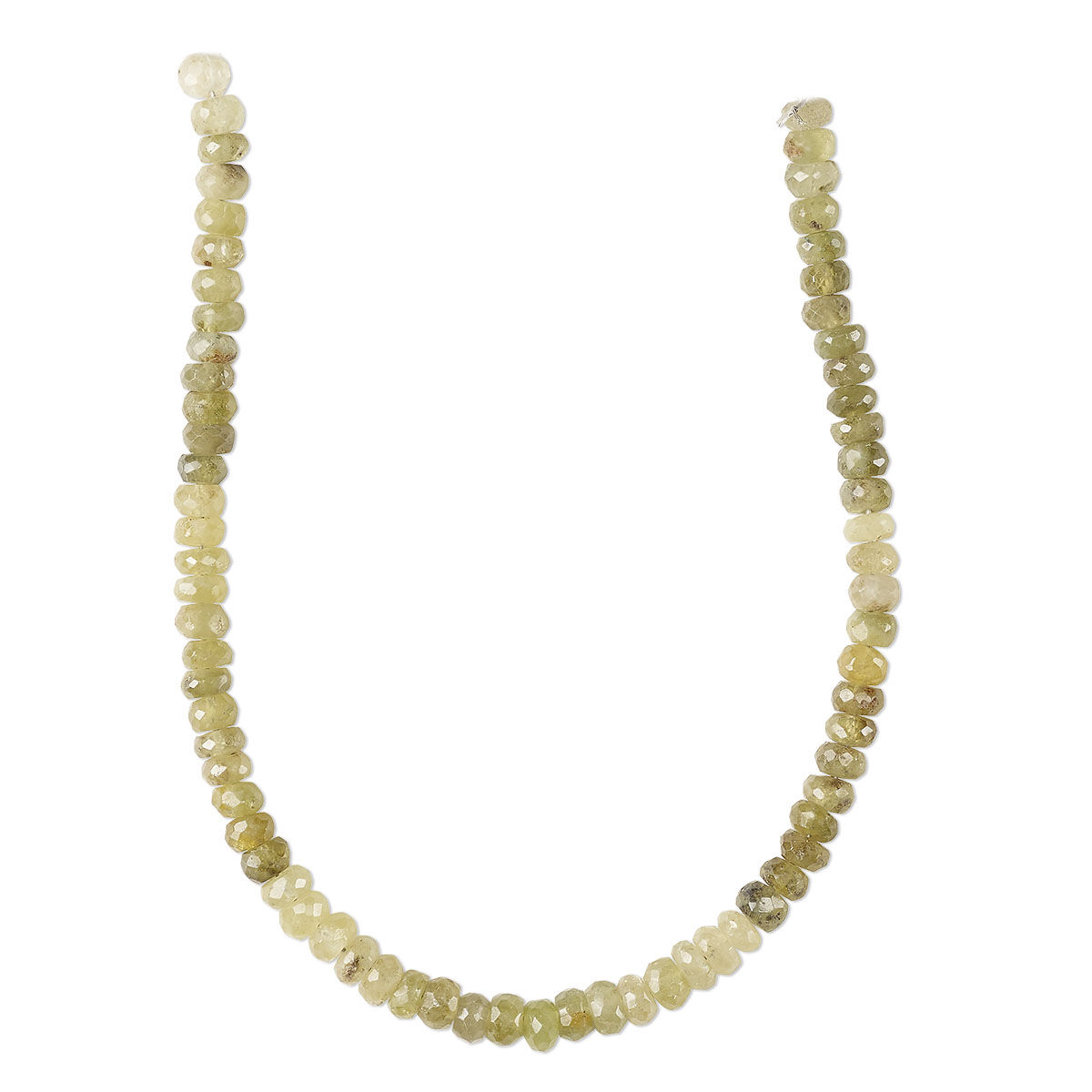 A member of the garnet family, grossularite garnet beads display a range of green and champagne hues. In metaphysical beliefs, this gemstone encourages hope and empowers those wearing it. These sparkling faceted rondelles are temporarily strung in a set pattern.