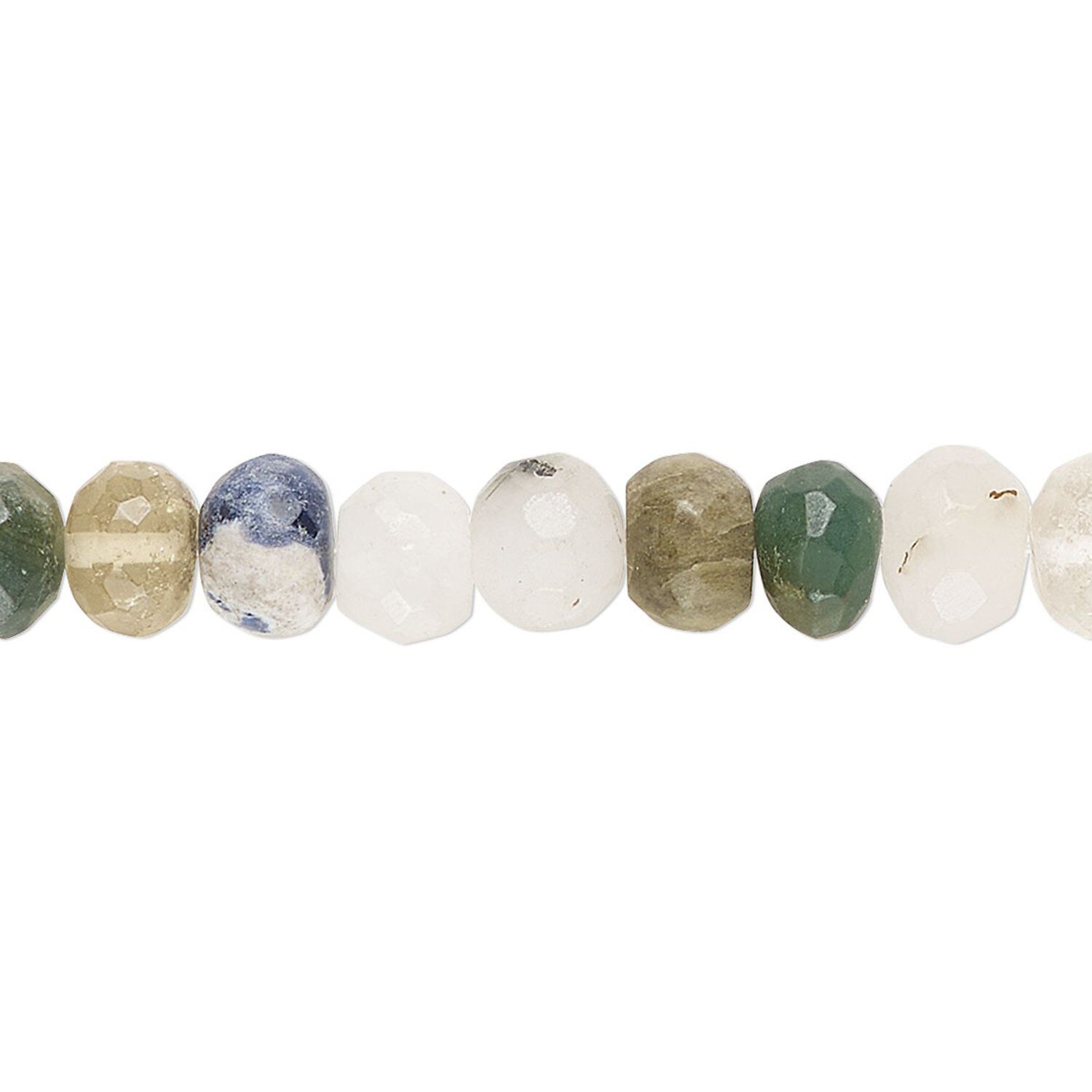 Multi-gemstone 1pkg1, hand-cut faceted rondelle bead 14 inch 7x4mm-8x6mm