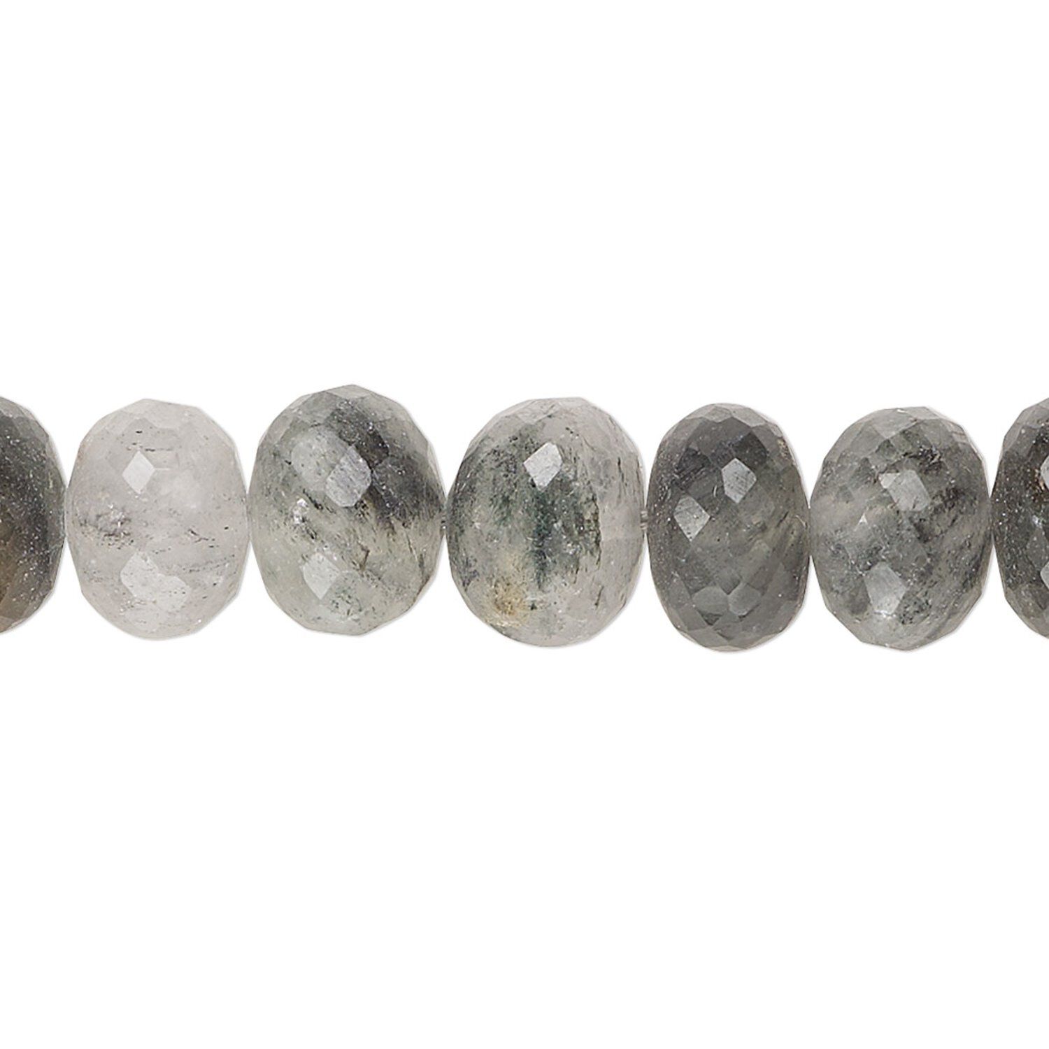 Black spotted quartz 1pkg1, hand-cut faceted rondelle bead natural 14 inch 10x6mm-11x8mm