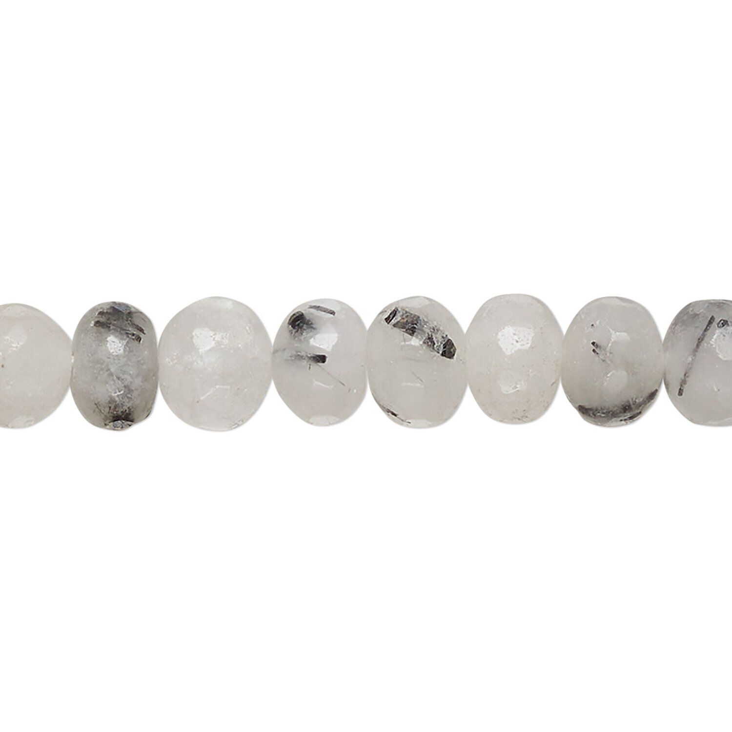 Tourmalinated quartz 1pkg1, hand-cut faceted rondelle bead natural 14 inch 7x4mm-8x7mm