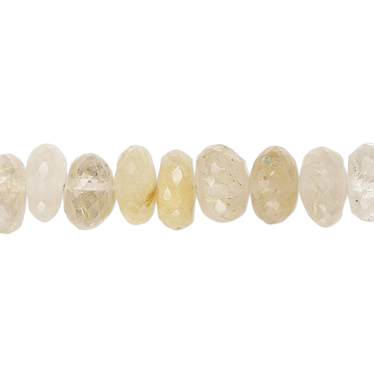 Golden rutilated quartz 1pkg1, hand-cut faceted rondelle / round bead natural 14 inch 9x6mm / 9-10mm