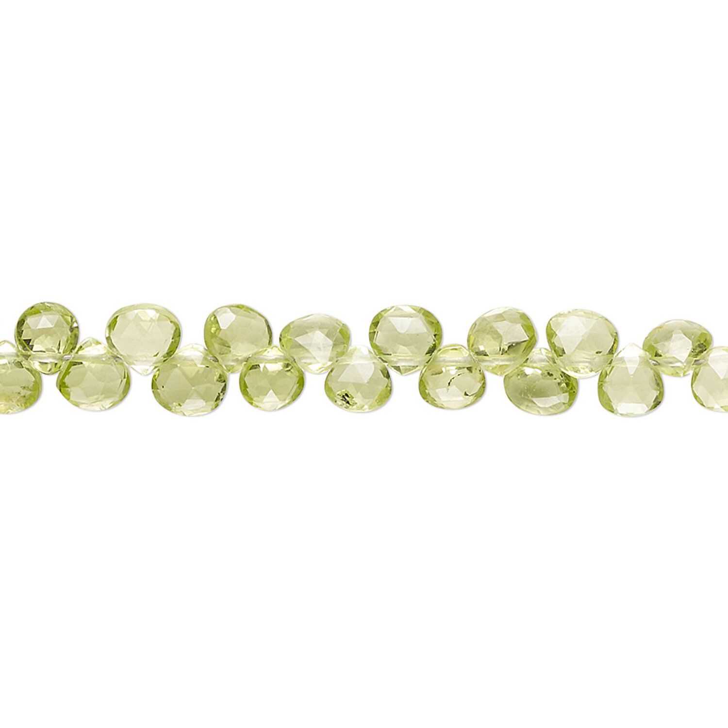 Peridot 1pkg1, hand-cut top-drilled faceted puffed teardrop bead natural 8 inch 4-5mm