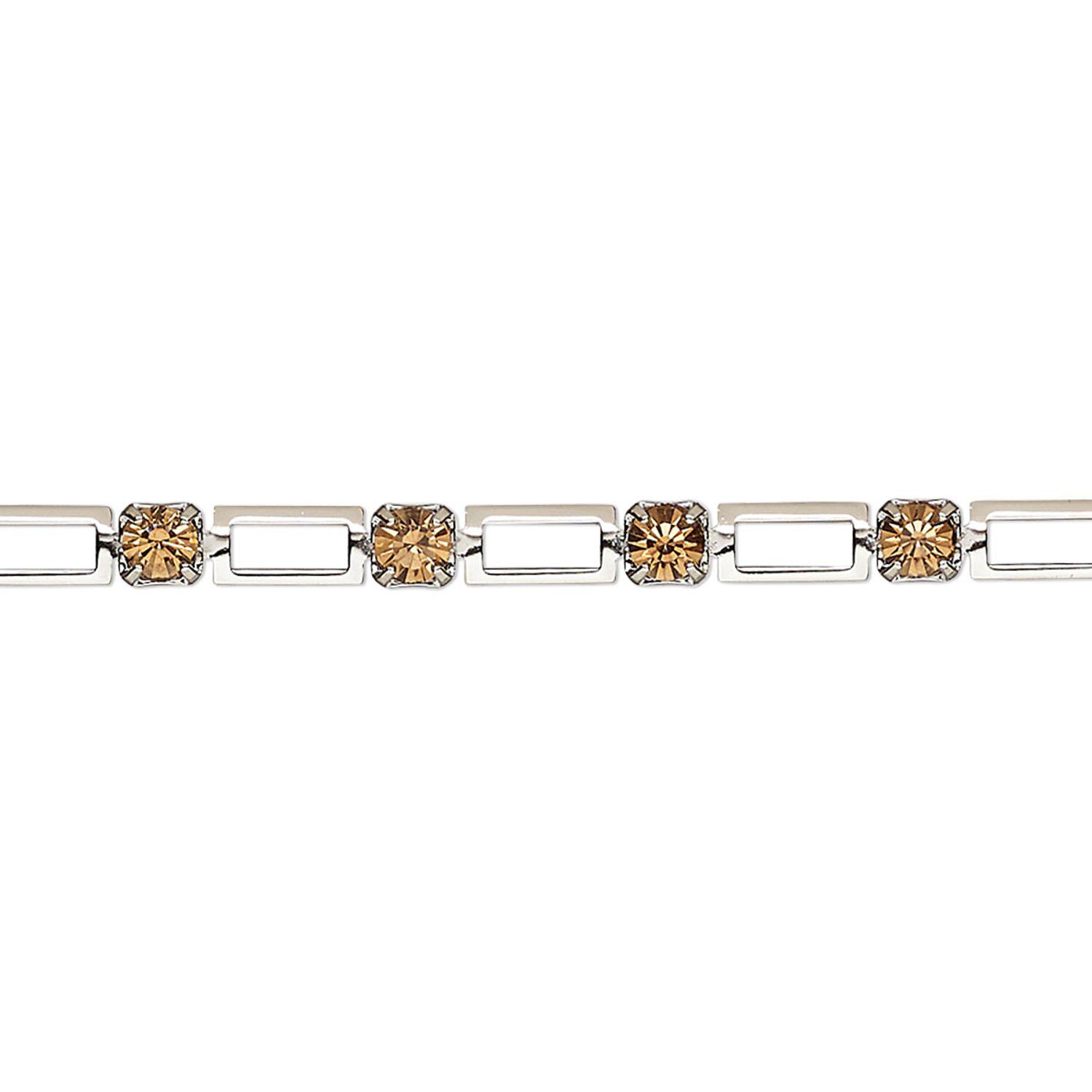 Cupchain, VINTAGE Crystal™, imitation rhodium-plated brass and crystal, light Colorado topaz, 3.3mm open rectangle. Sold per pkg of 1 meter.