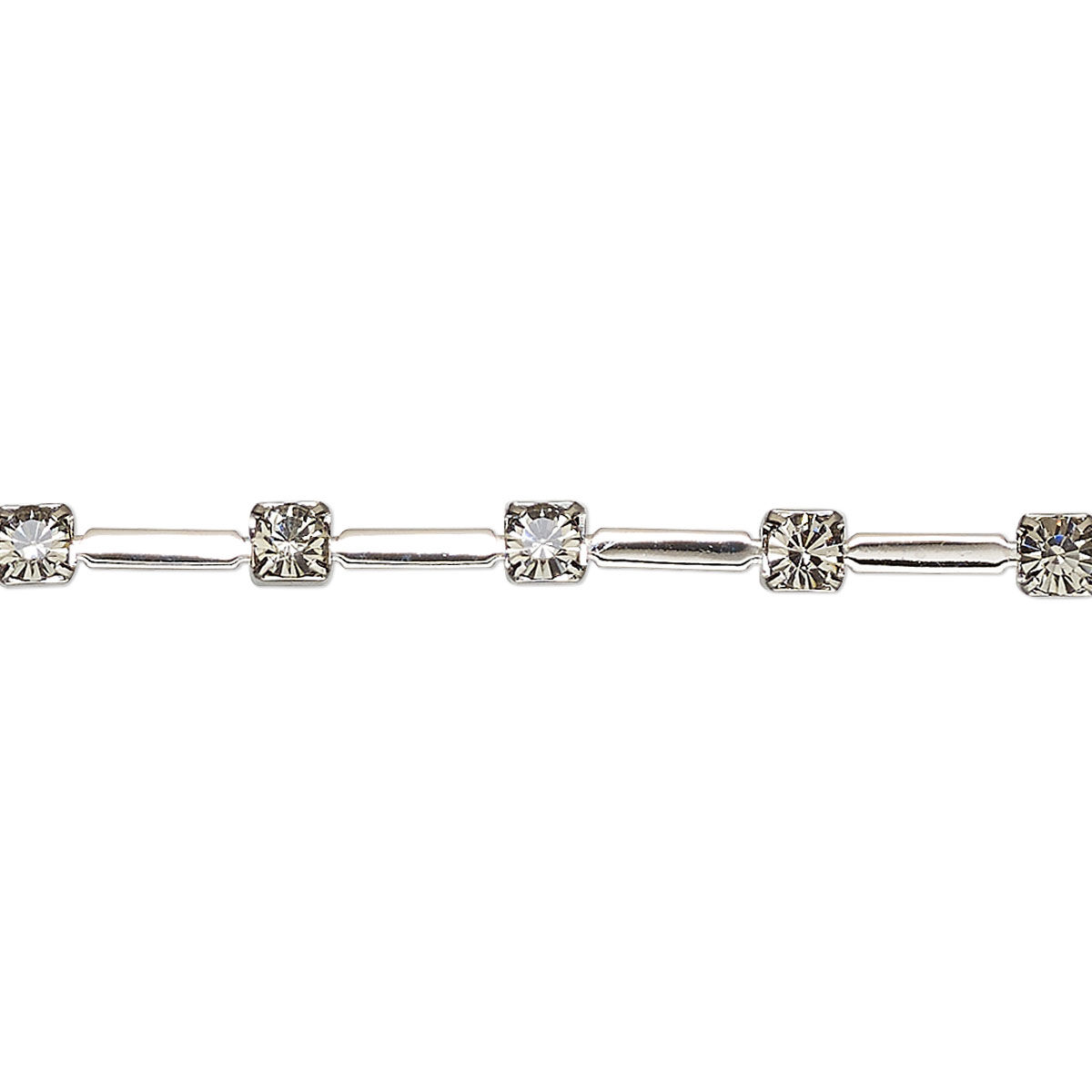 Cupchain, VINTAGE Crystal™, imitation rhodium-plated brass and crystal, black diamond, 3.3mm round. Sold per pkg of 1 meter.