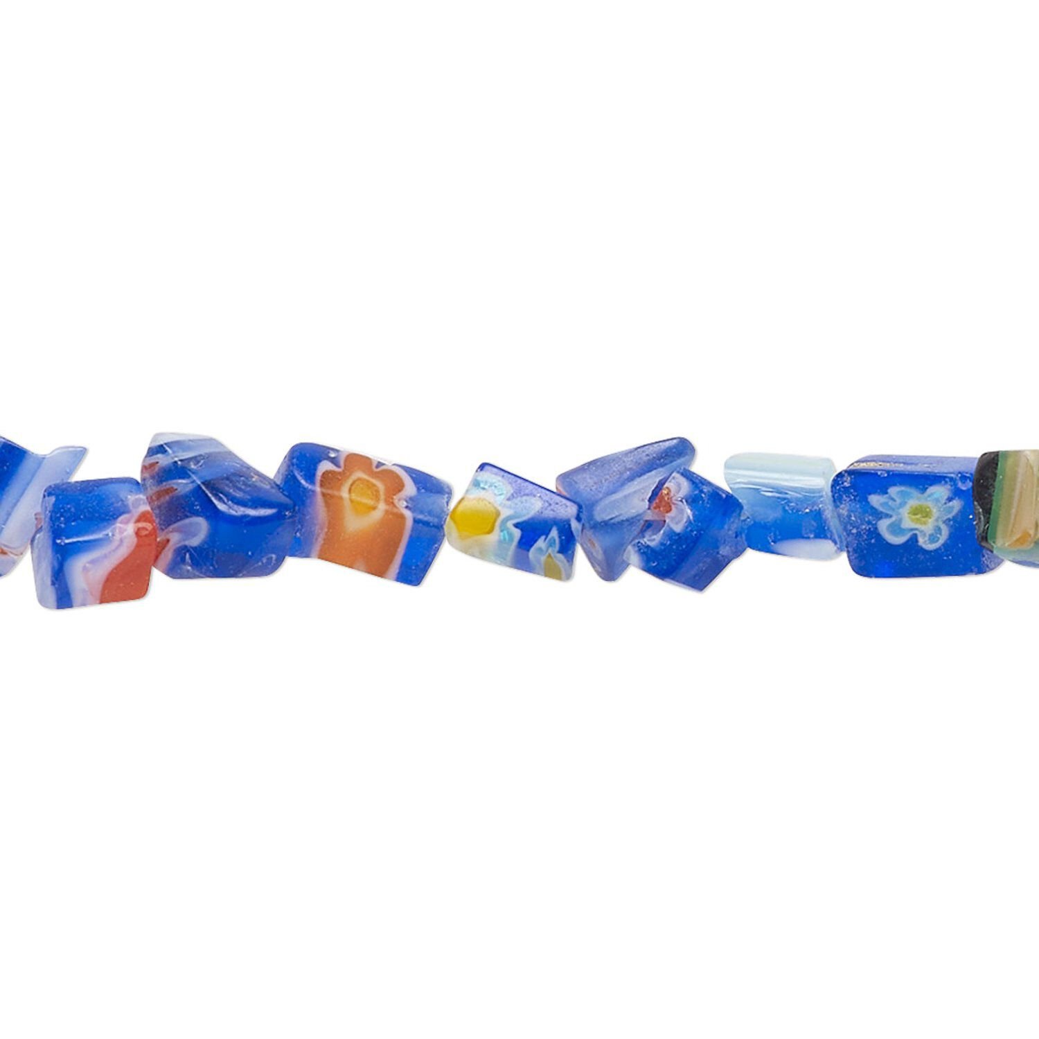 Bead, millefiori glass, translucent cobalt blue and multicolored, small chip. Sold per 35-inch strand.