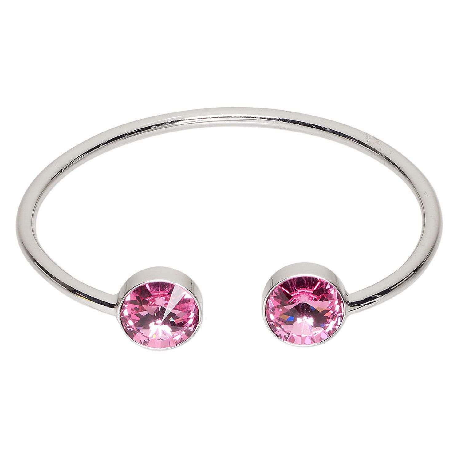 Bracelet, cuff, Everyday Jewelry™, Crystal Passions® and silver-plated "pewter", rose, 13mm wide double round, 7 inches. Sold individually.