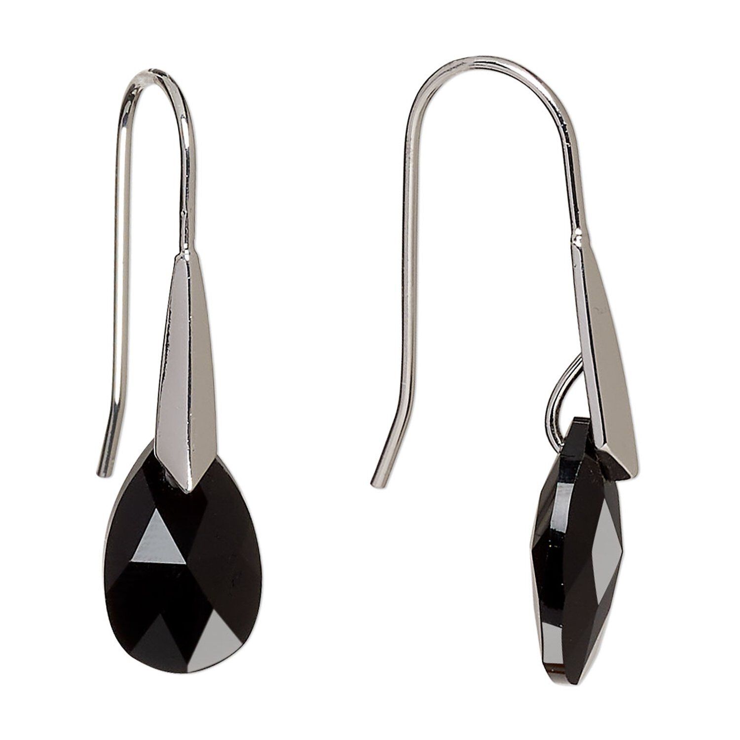 Earring, Everyday Jewelry™, Crystal Passions® and silver-plated "pewter", jet, 37mm fishhook with teardrop, 29 gauge. Sold per pair.