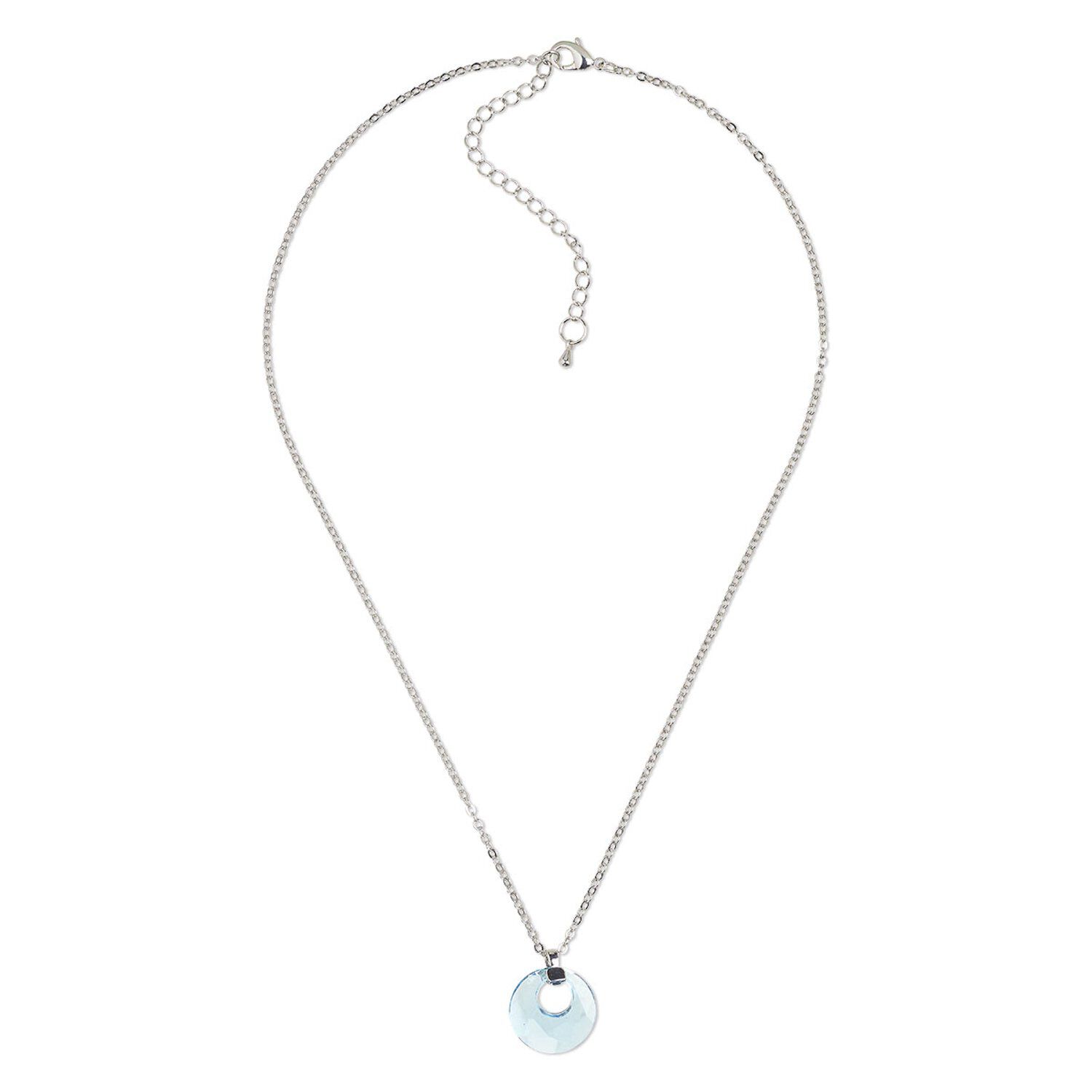 Necklace, Everyday Jewelry™, Crystal Passions® and silver-plated "pewter", blue, 21x18mm faceted go-go, 17-1/2 inches with 2-1/2 inch extender chain and lobster claw clasp. Sold individually.