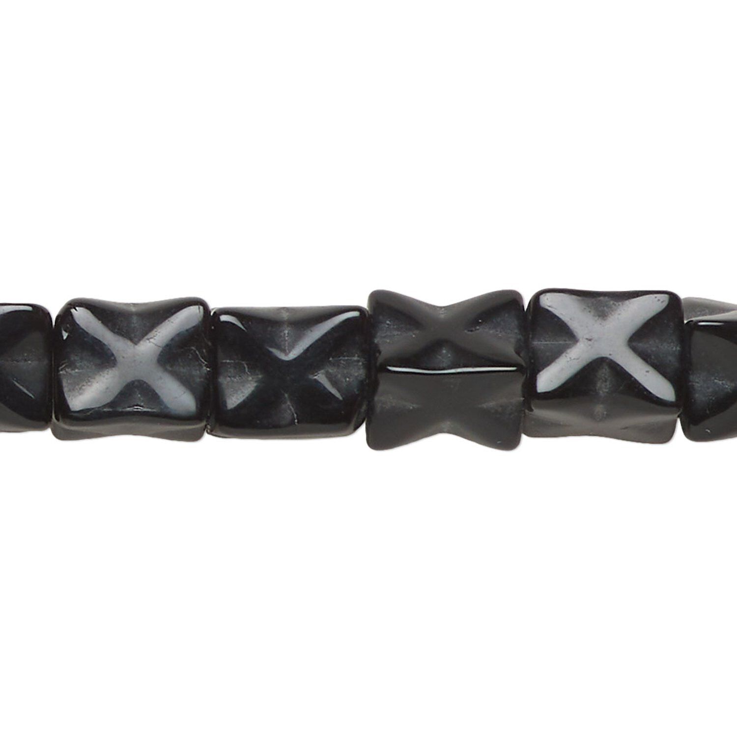 Bead, glass, opaque black, 9x7mm square tube. Sold per 11-inch strand, approximately 30 beads.