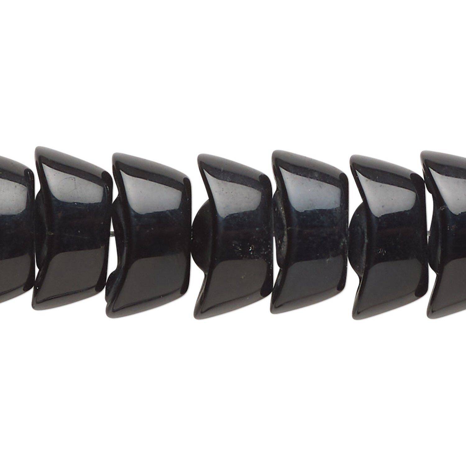 Bead, glass, opaque black, 15x7mm-16x8mm ingot. Sold per 11-inch strand, approximately 35 beads.