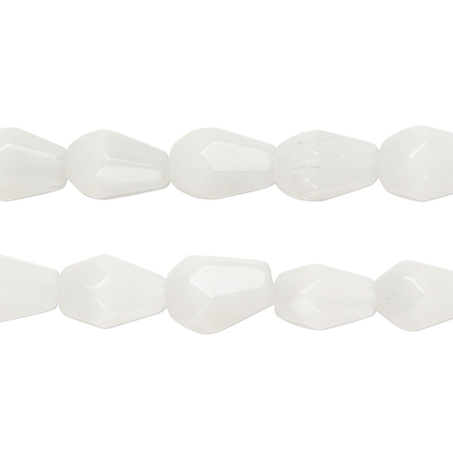 Bead, glass, translucent white, 10x6mm-11x7mm faceted teardrop. Sold per pkg of (2) 13-inch strands, approximately 60 beads.