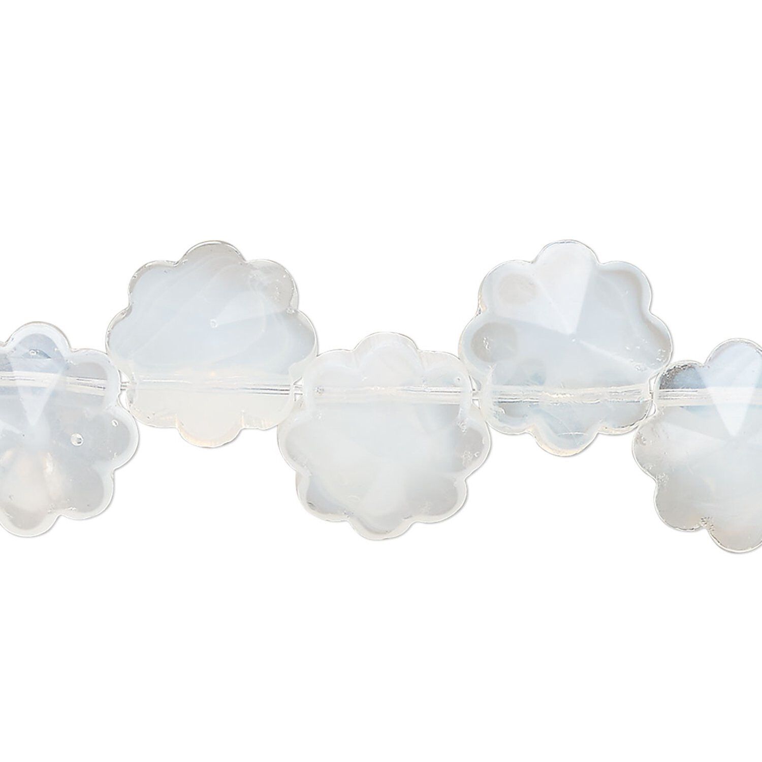Bead, sea "opal" glass, translucent white, 12mm top-drilled faceted flower. Sold per 15-inch strand.