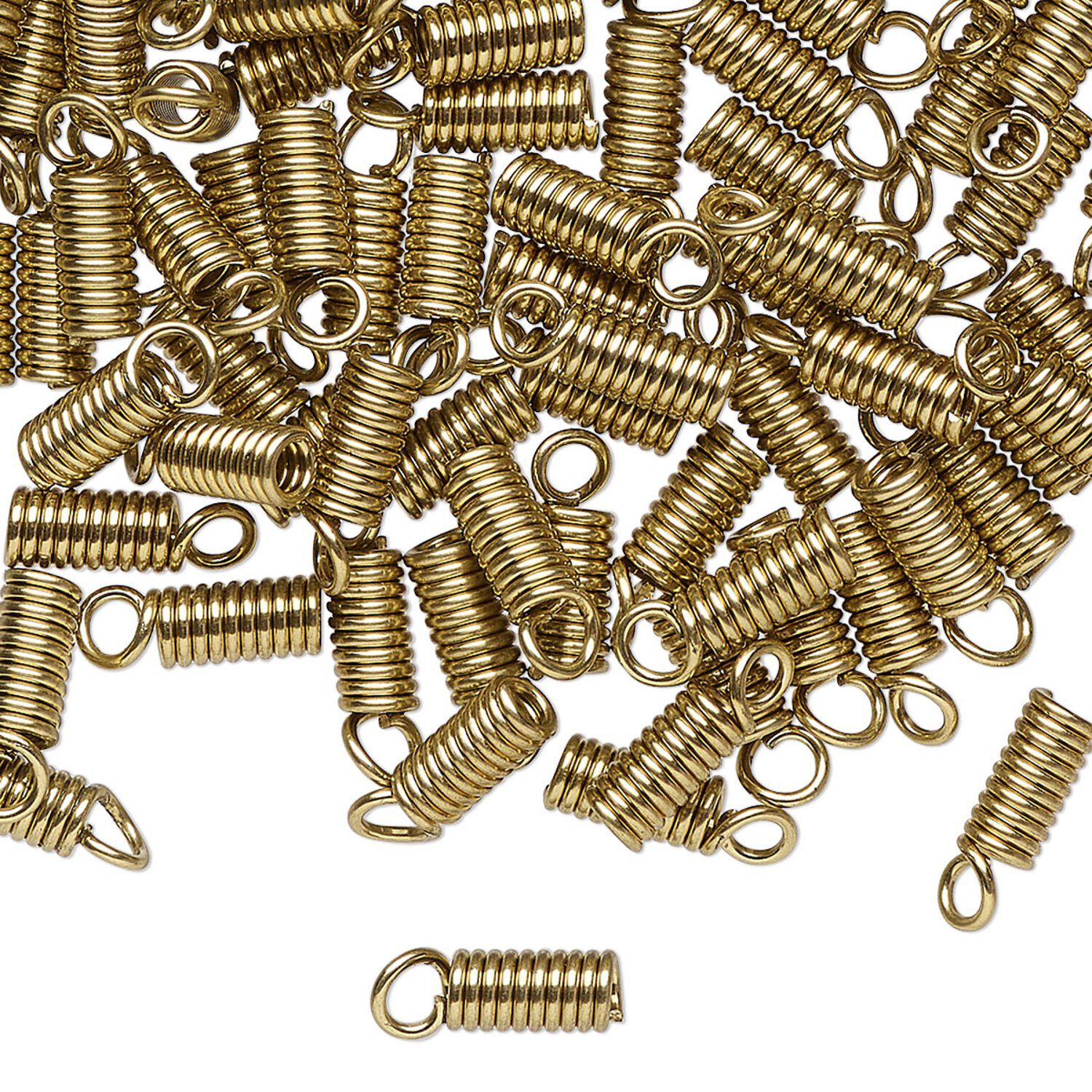 Cord coil, gold-finished brass, glue-in, 10x3mm with loop, 1.9mm inside diameter. Sold per 1-ounce pkg.