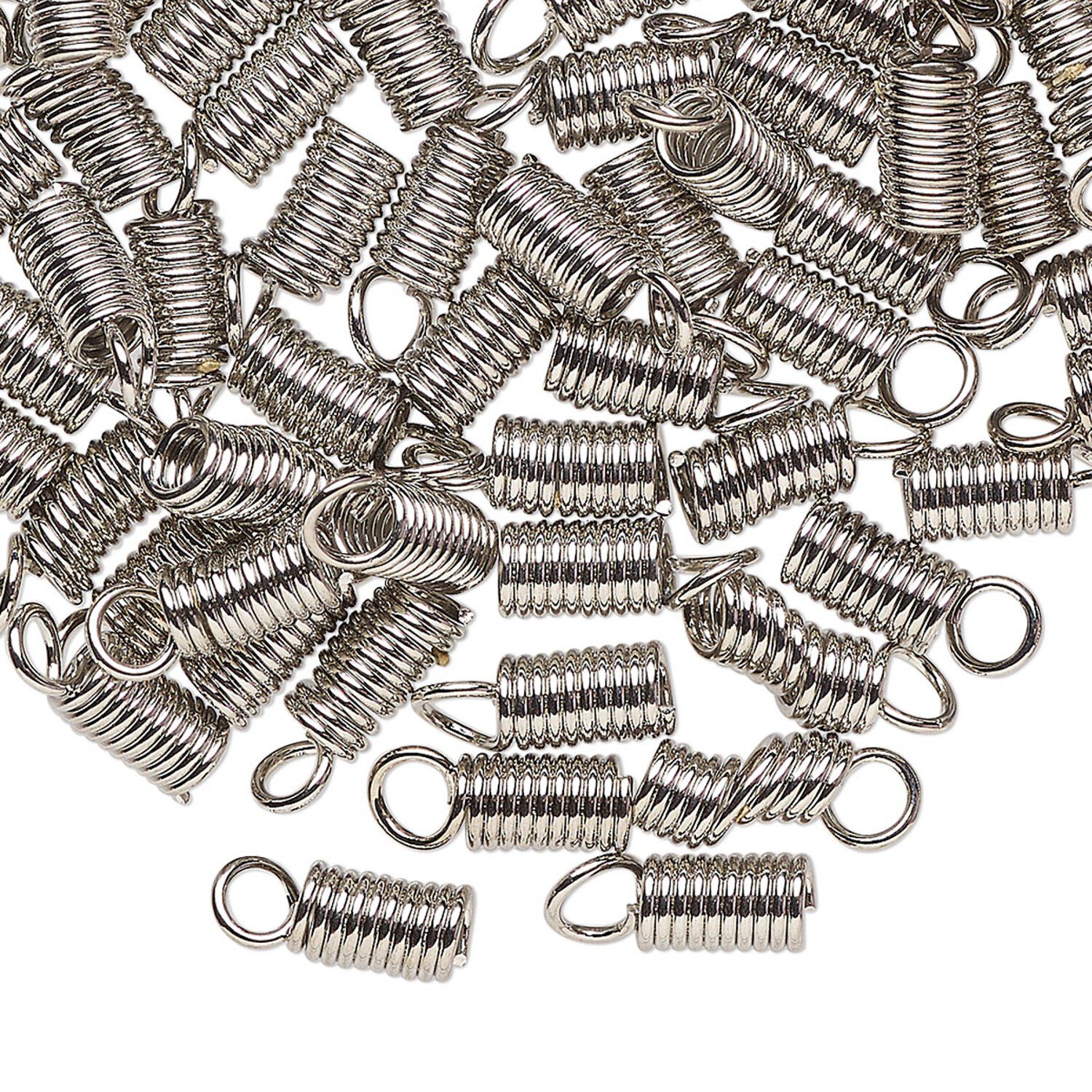 Cord coil, antique silver-finished brass, glue-in, 10x4mm with loop, 2.5mm inside diameter. Sold per 1-ounce pkg.