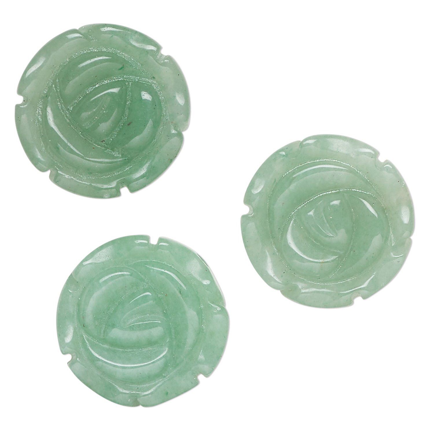 Green aventurine 1pkg3, center-drilled / half-drilled carved flower bead natural 19-20mm