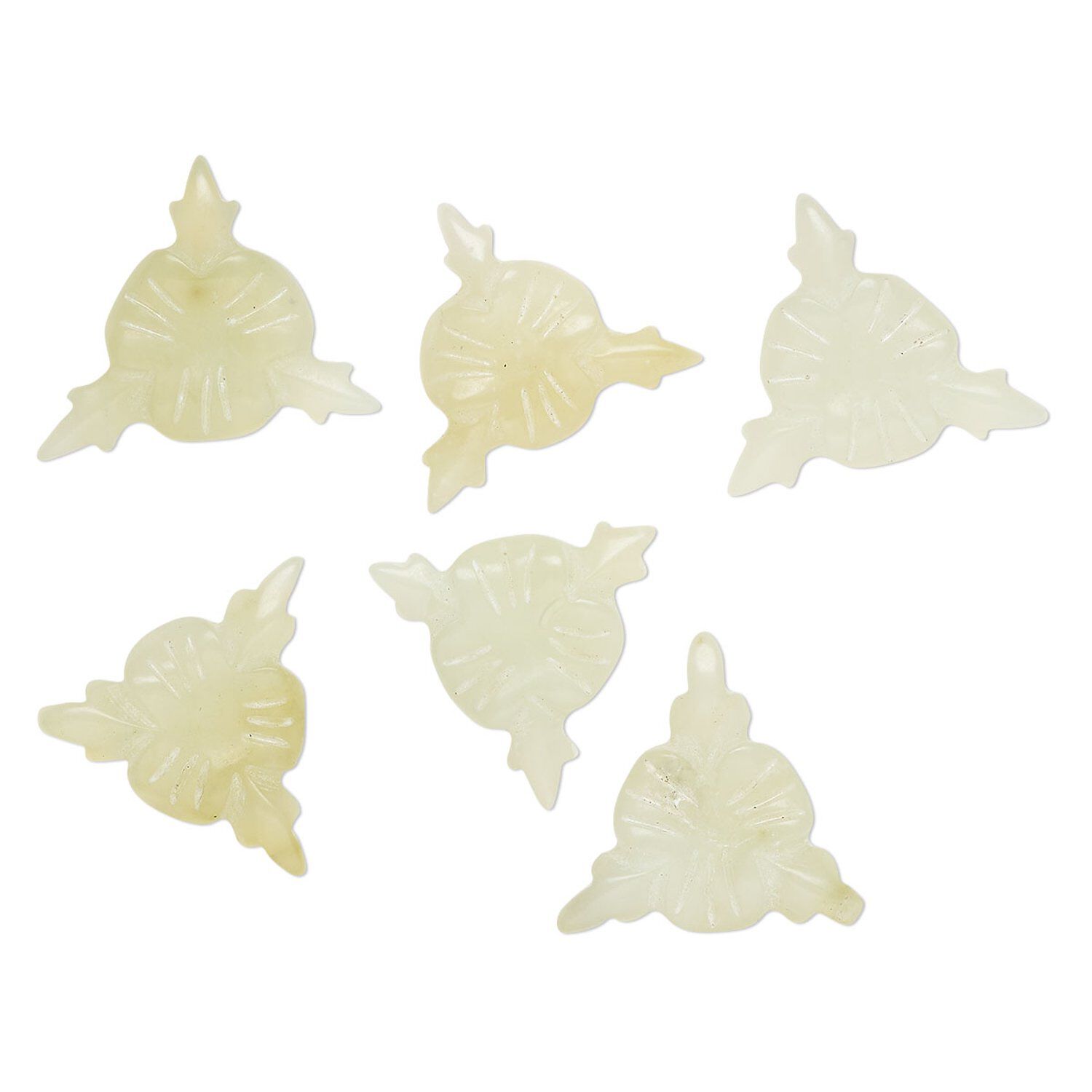 New "jade" 1pkg6, carved flower / leaves component natural 25x22mm-26x23mm