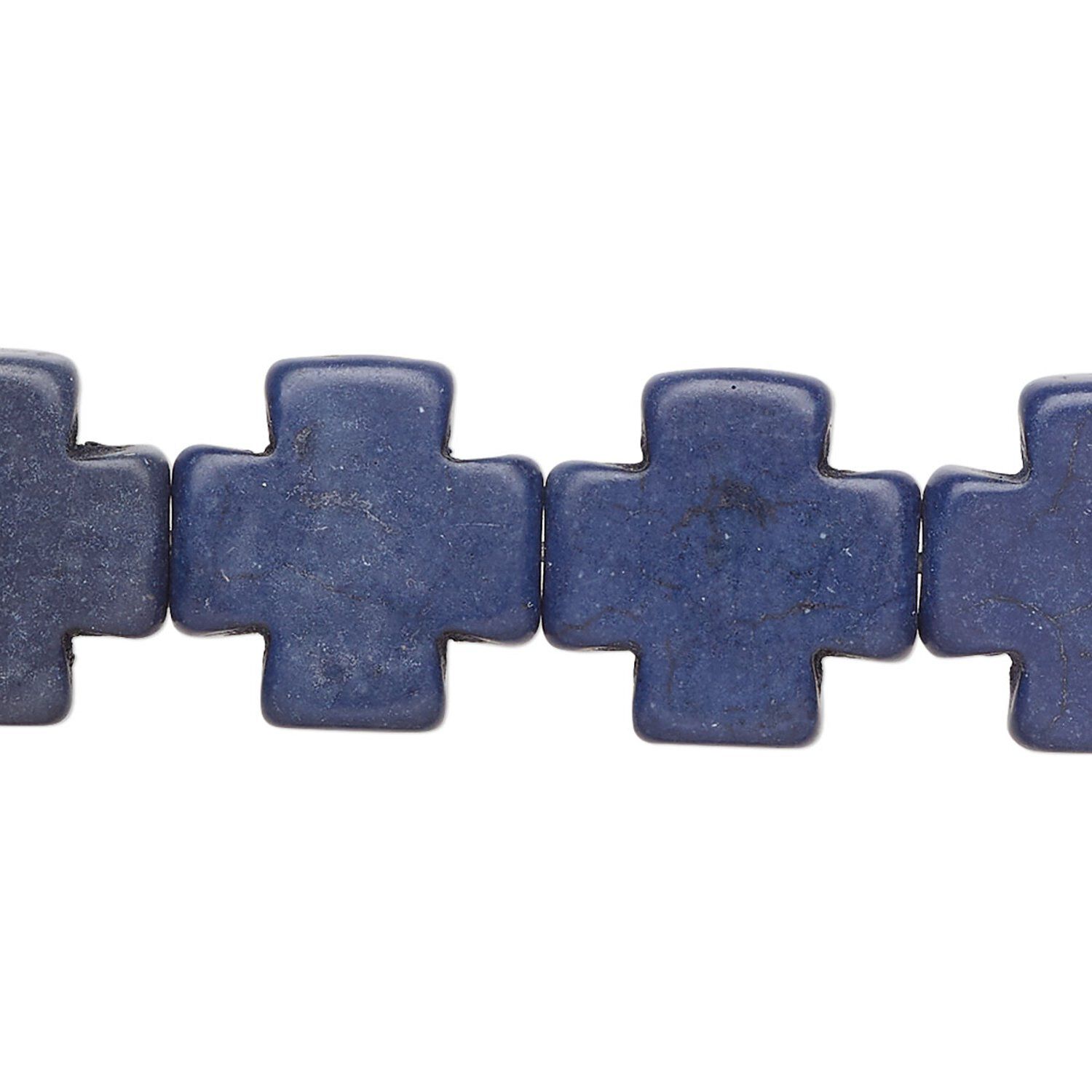 Bead, "howlite" (resin) (imitation), opaque dark blue, 15mm cross. Sold per 15-1/2" to 16" strand.