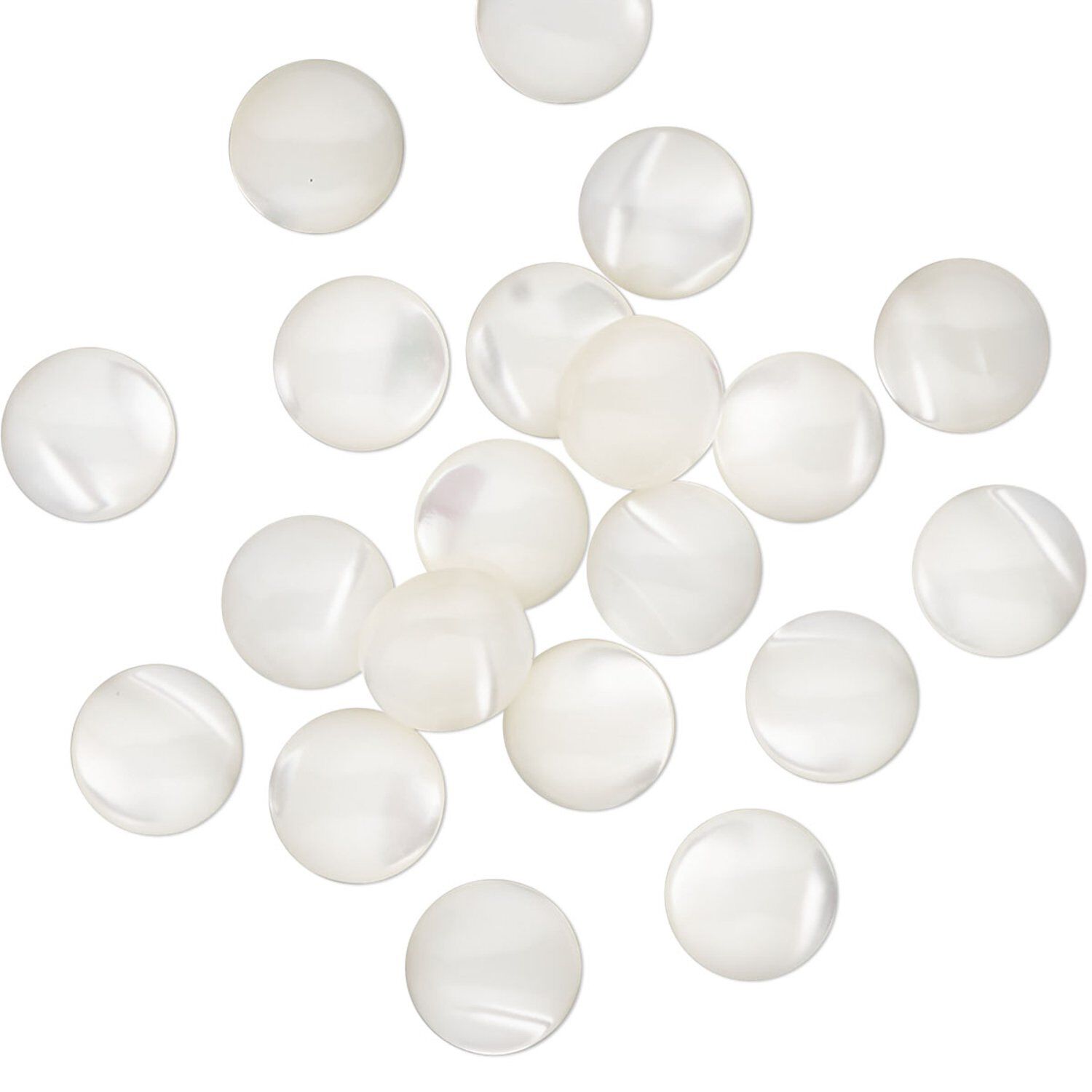 Cabochon, mother-of-pearl shell (bleached), 7mm non-calibrated round, Mohs hardness 3-1/2. Sold per pkg of 20.