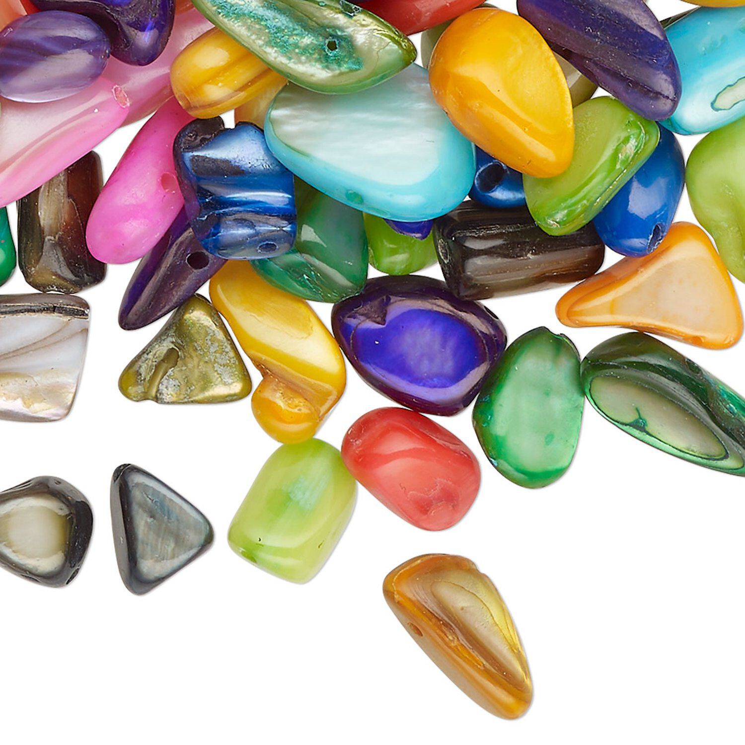 Bead mix, mother-of-pearl shell (dyed), Colors can include mixed colors, small to extra-large chip, Mohs hardness 3-1/2. Sold per 4-ounce pkg.