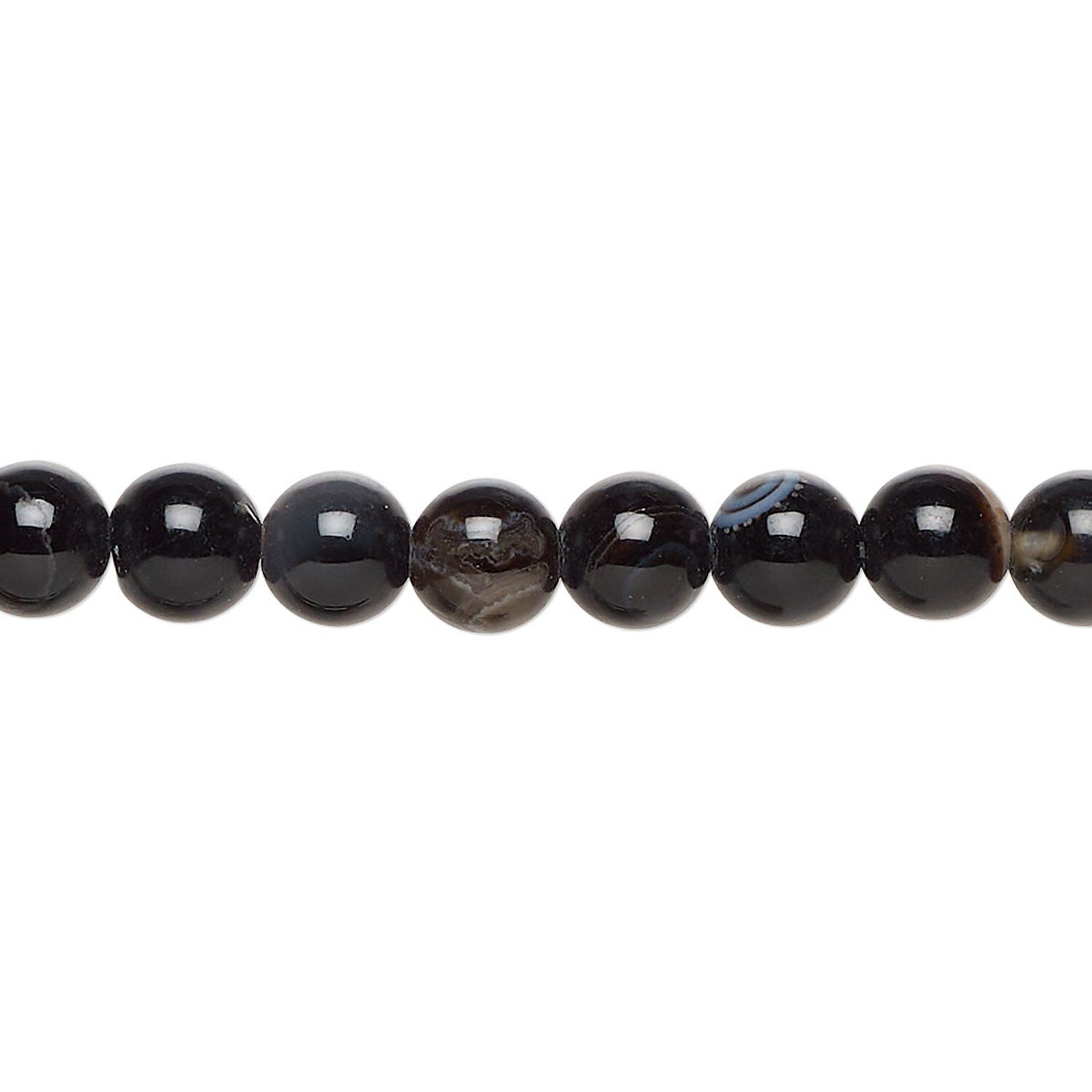 Black agate 1pkg1, round bead 15 inch 5-6mm