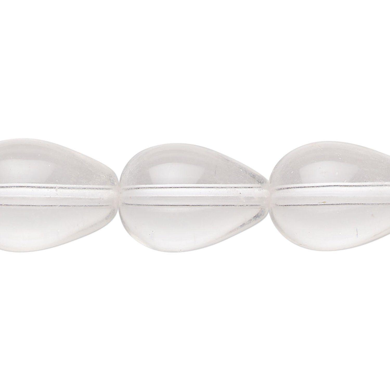 Bead, glass, transparent clear, 17x11mm-18x13mm teardrop. Sold per 15-1/2" to 16" strand.