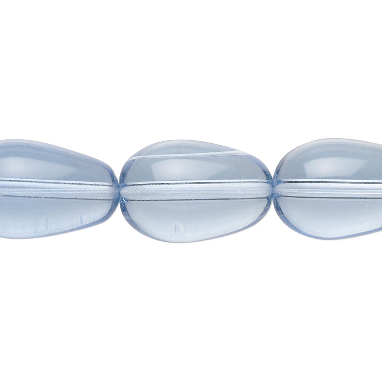 Bead, glass, transparent blue, 17x11mm-18x13mm teardrop. Sold per 15-1/2" to 16" strand.