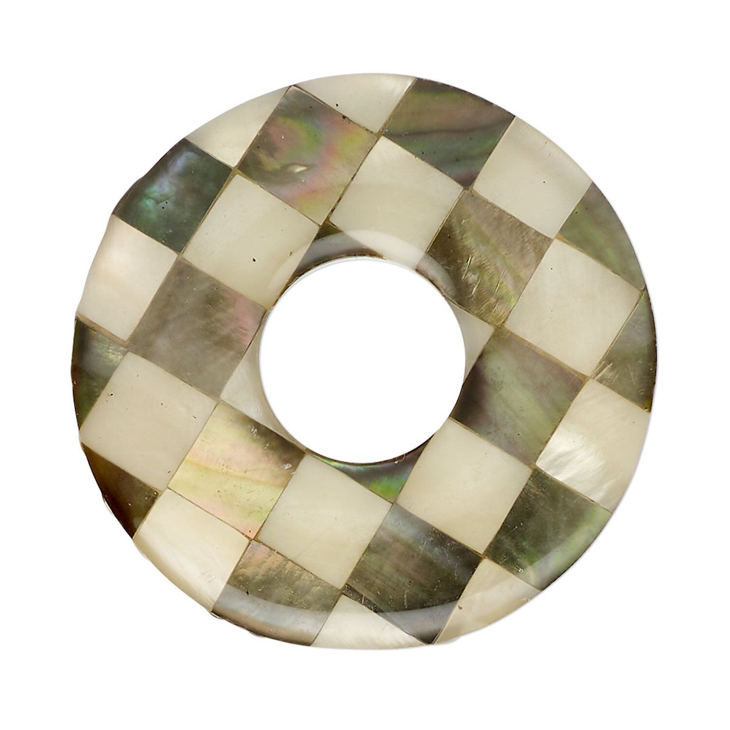 Focal, black lip shell / gold lip shell / mother-of-pearl shell (assembled), 34-35mm single-sided donut, Mohs hardness 3-1/2. Sold individually.