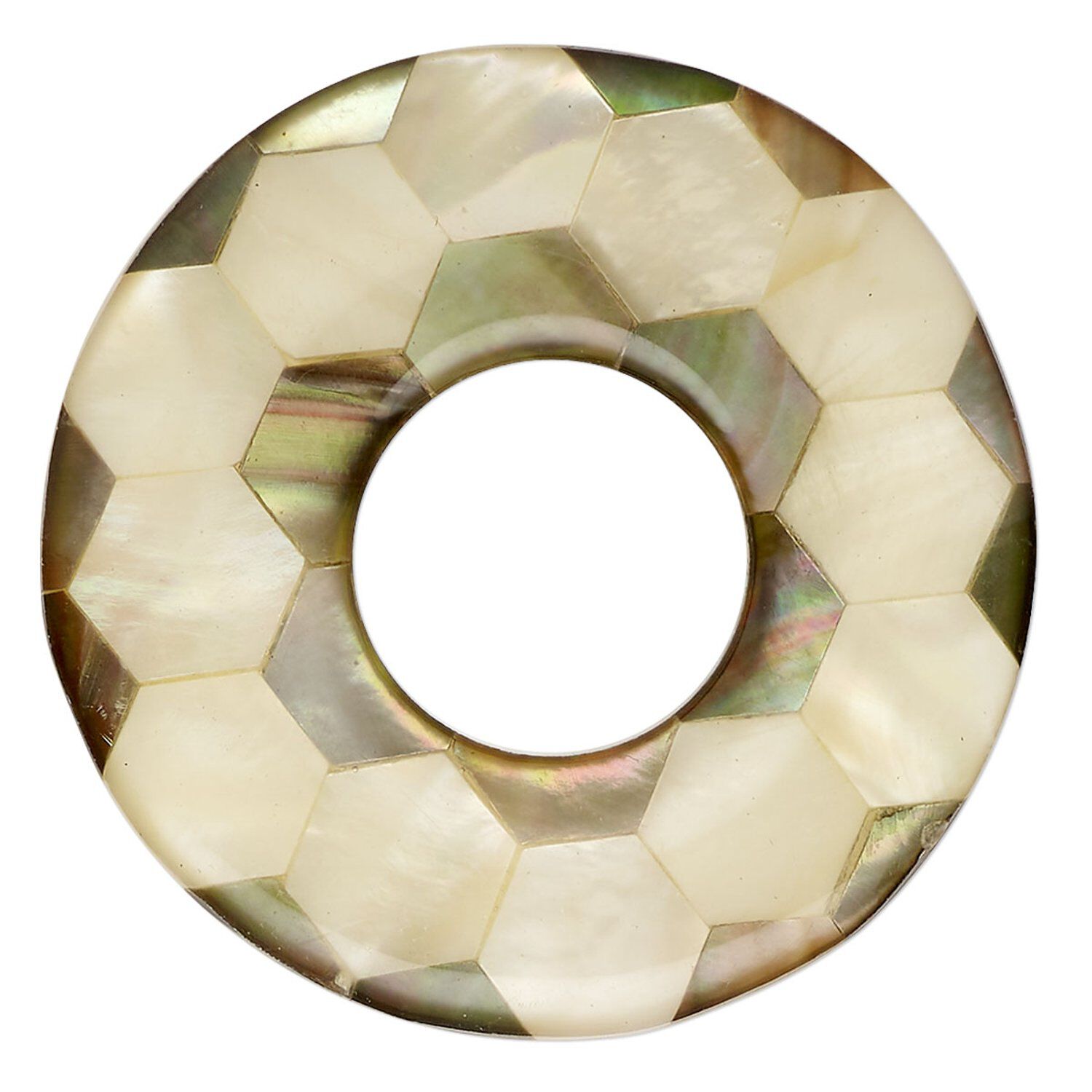 Focal, black lip shell / gold lip shell / mother-of-pearl shell (assembled), 41mm single-sided donut, Mohs hardness 3-1/2. Sold individually.