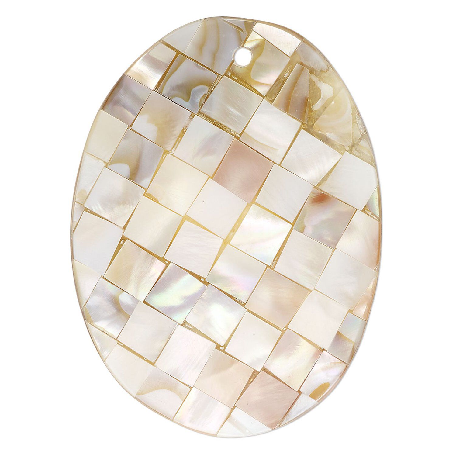Focal, black lip shell / gold lip shell / mother-of-pearl shell (assembled), 58x43mm - 61x46mm single-sided concave oval, Mohs hardness 3-1/2. Sold individually.
