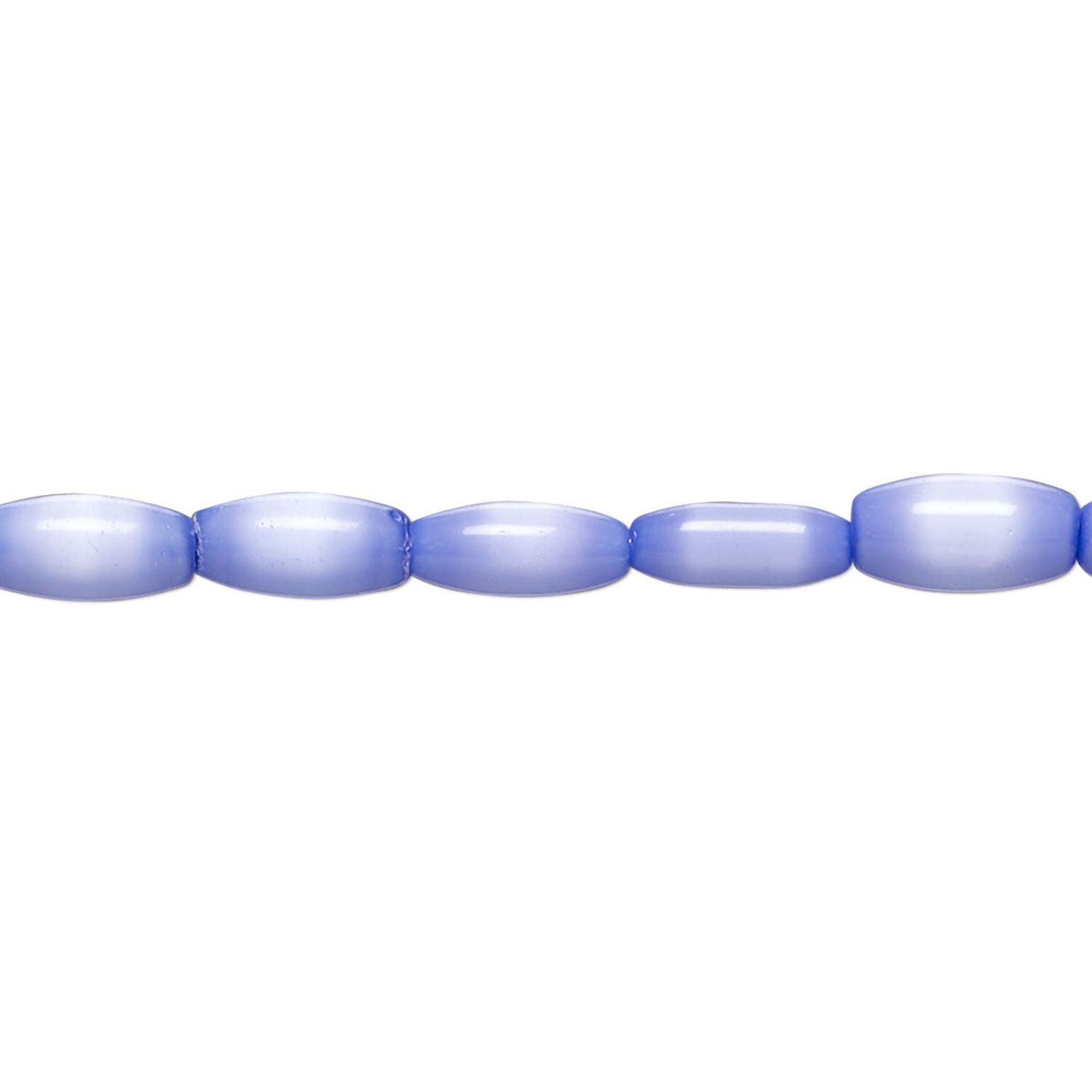 Bead, cat's eye glass (fiber optic glass), blue, 9x4mm-11x5mm barrel. Sold per 15-inch strand, approximately 40 beads.