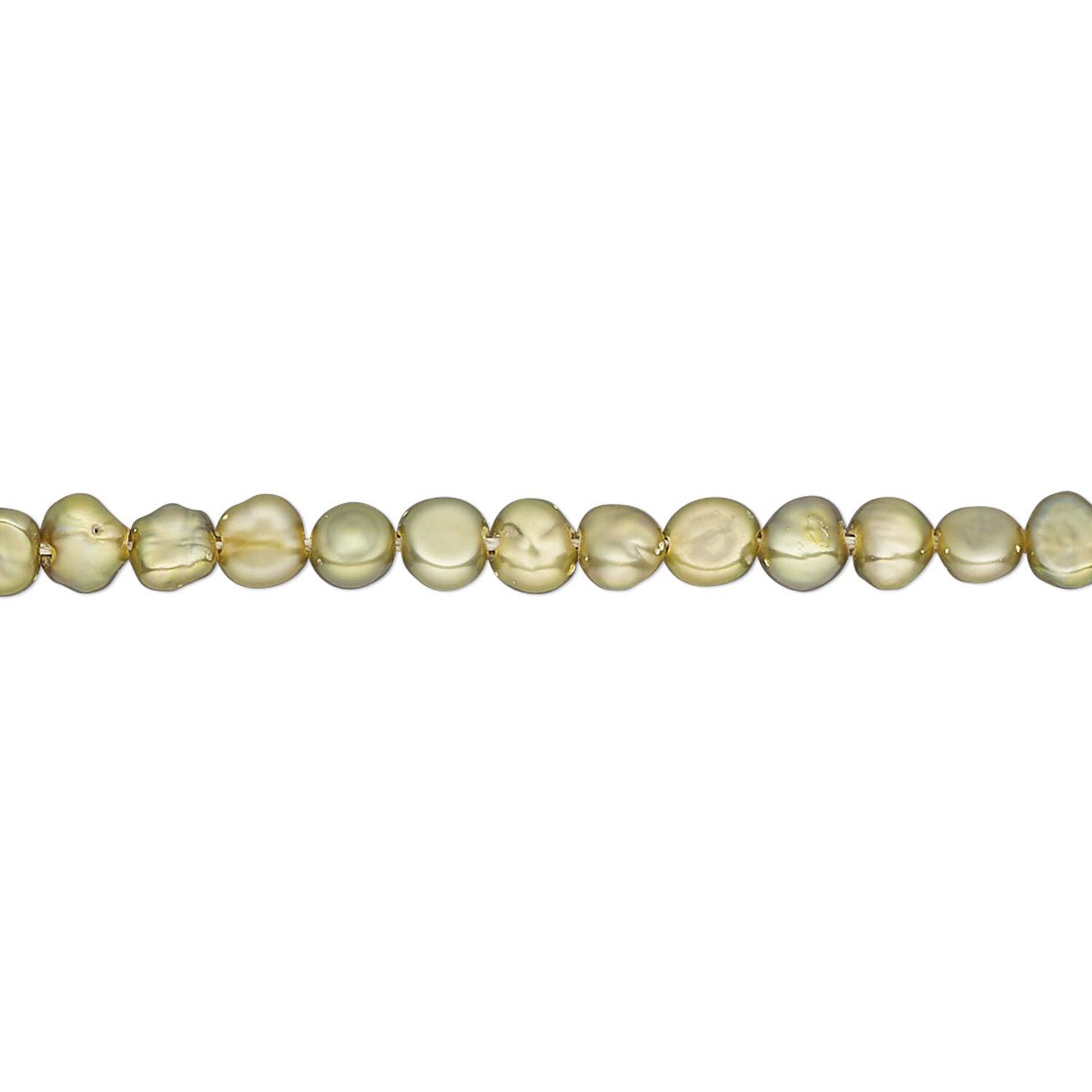 Pearl, cultured freshwater pearl (dyed), green olive, 3-4mm flat-sided potato, D grade, Mohs hardness 2-1/2 to 4. Sold per 15-inch strand, approximately 105 beads.