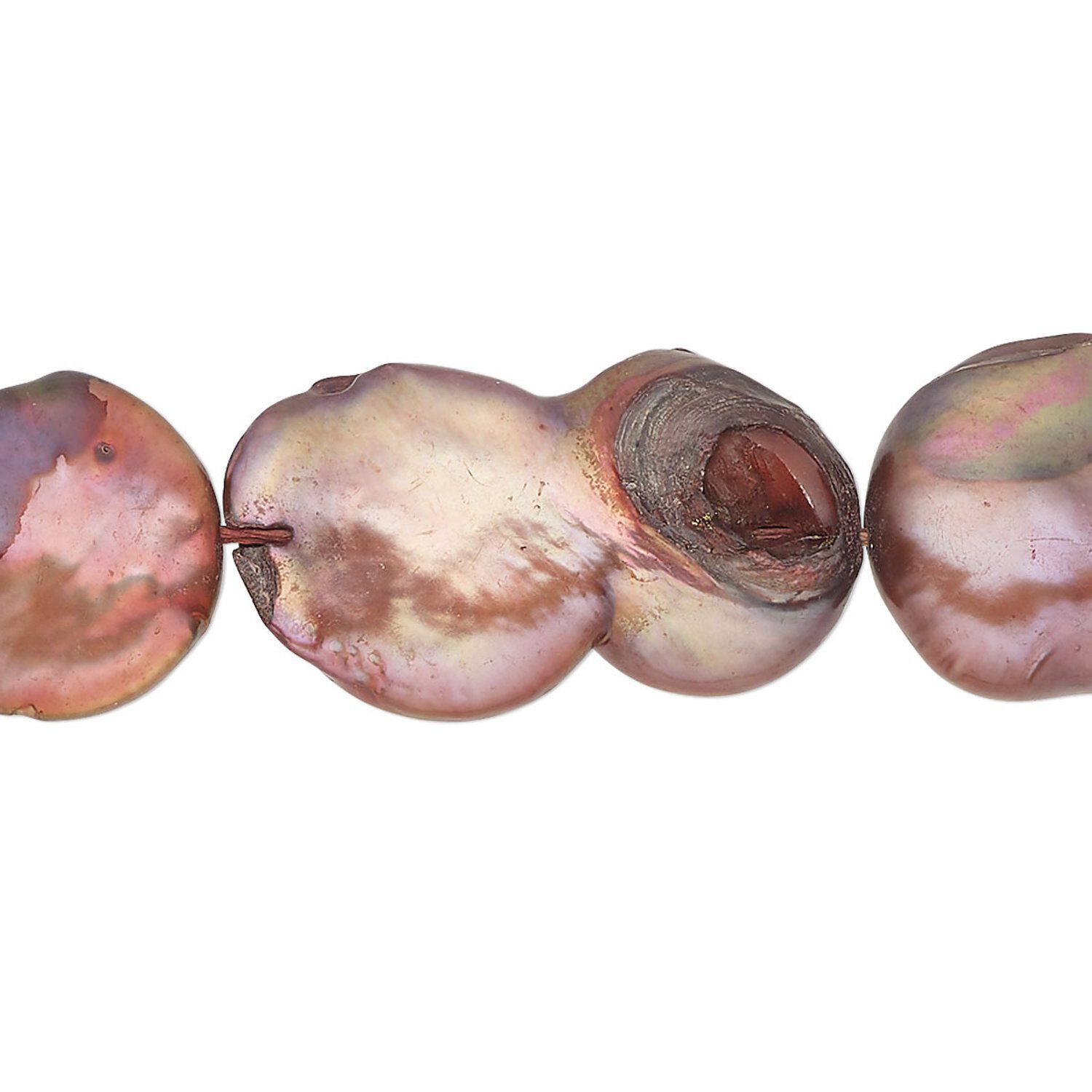 Pearl, cultured freshwater pearl (dyed), cranberry, 21x13mm-28x16mm double flat round, Mohs hardness 2-1/2 to 4. Sold per 14-inch strand, approximately 15 beads.