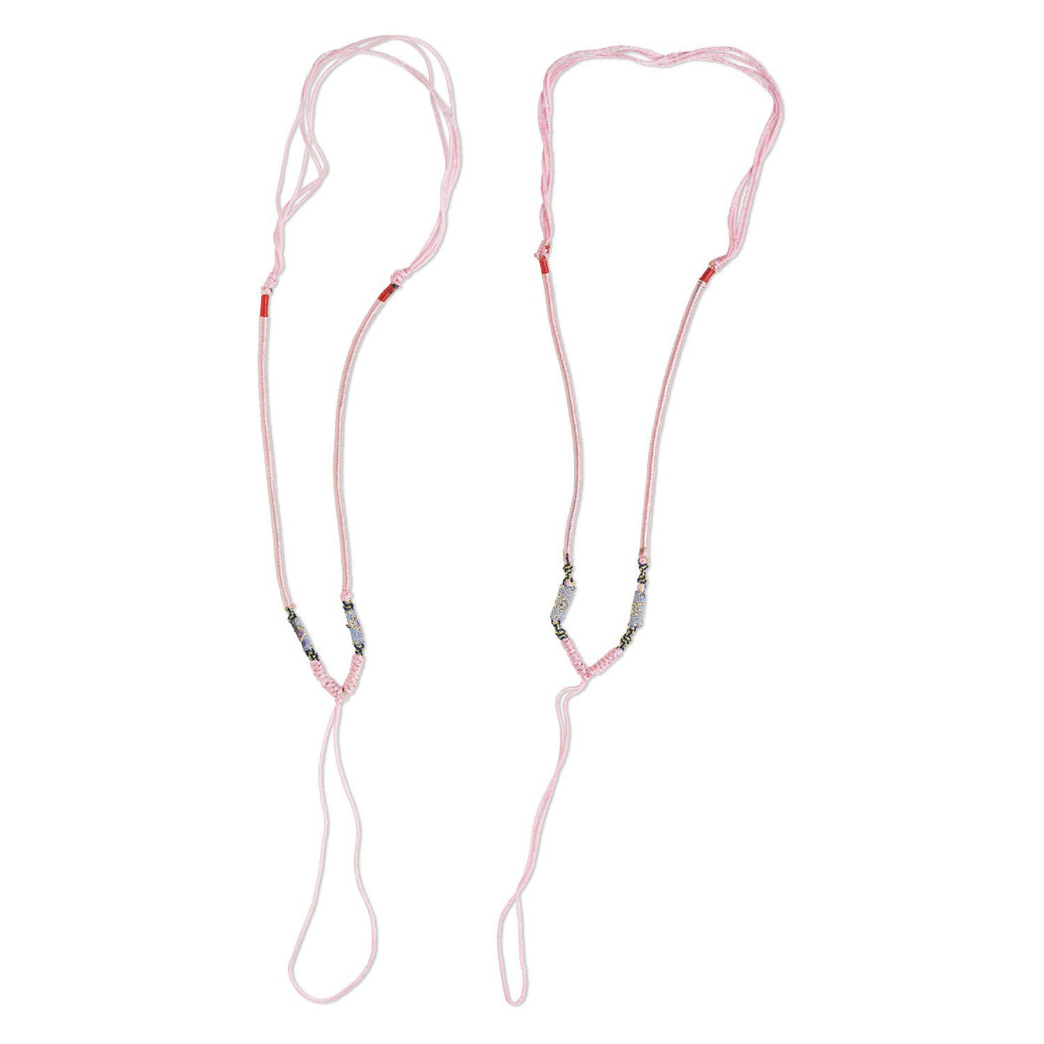 Necklace cord, macramé, imitation silk, pink and multicolored, 2-3.5mm wide with 5-1/2 inch dangle, 20 inches with slip knot closure. Sold per pkg of 2.