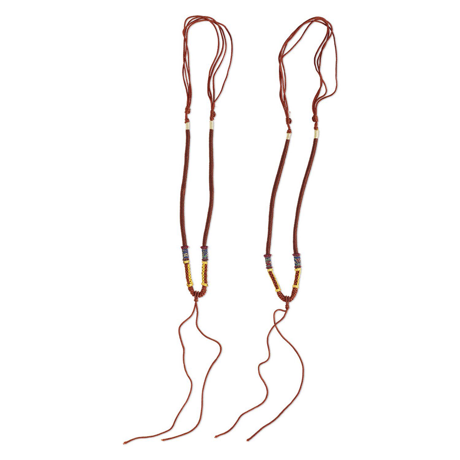Necklace cord, macramé, jadeite (natural/dyed) and imitation silk, copper and multicolored, 2-3.5mm wide with 5-1/2 inch dangle, 20 inches with slip knot closure. Sold per pkg of 2.
