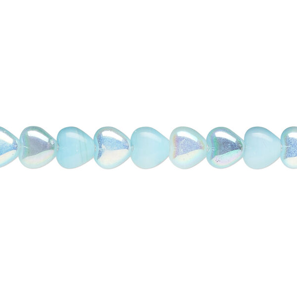 Bead, pressed glass, opaque light blue AB, 6mm puffed heart. Sold per 7-inch strand, approximately 30 beads.